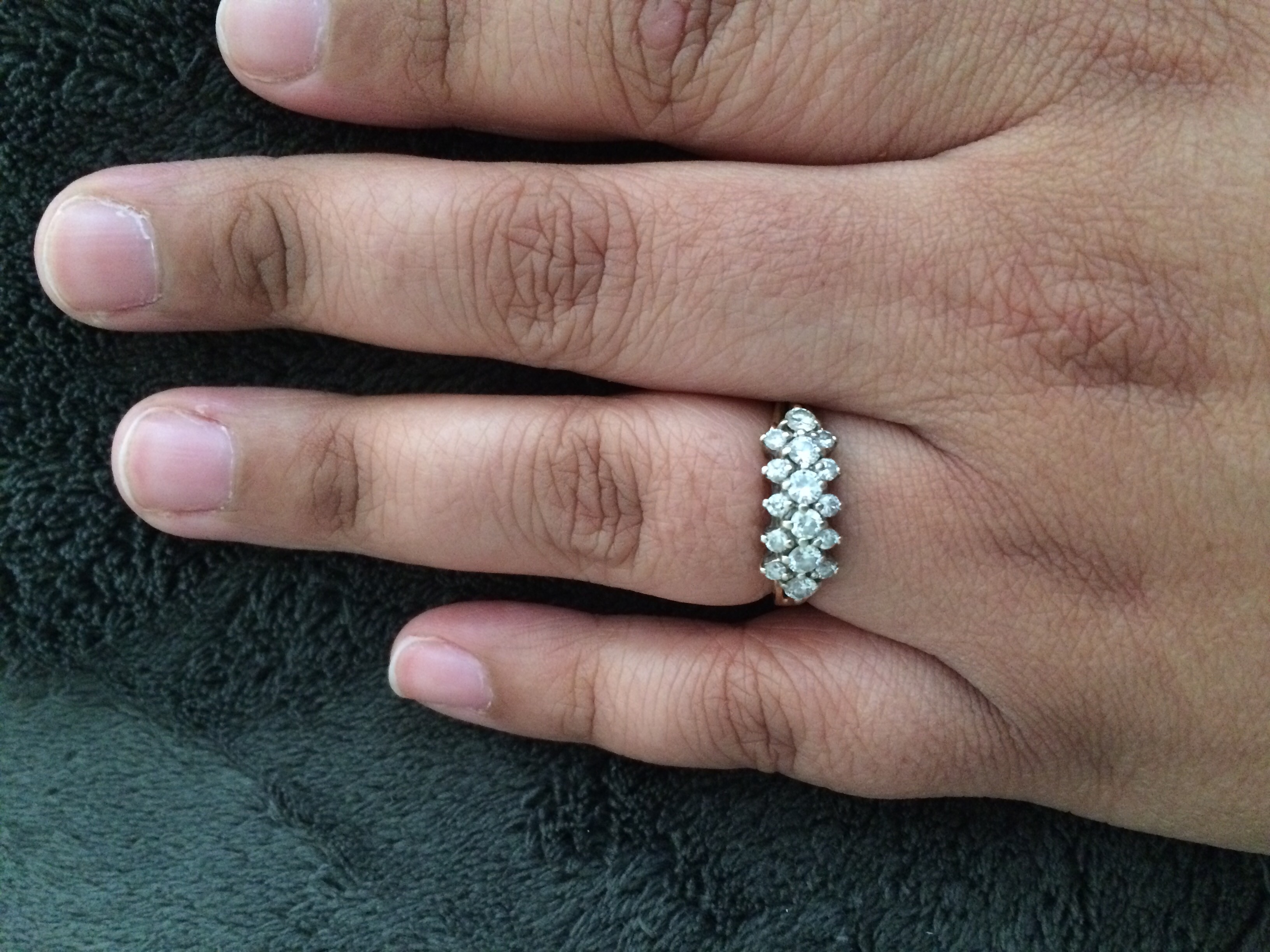Great post idea! Engaged Decemeber 2012 Married January 2014 First baby due November 2015 My center stone is from my great-uncle who had his own rags to riches story. My mom wears his wife's stone as her ring.