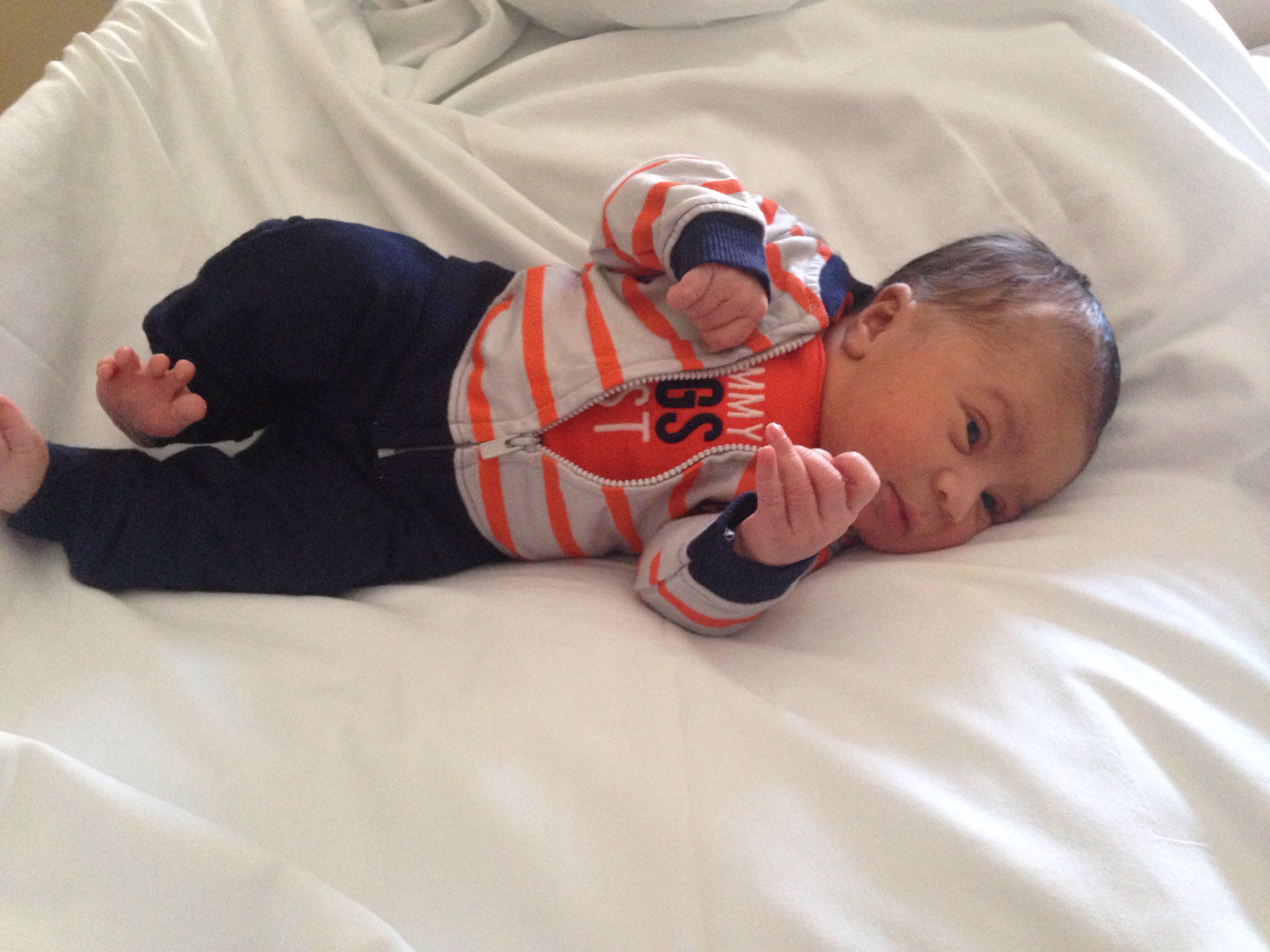 At the end of the day, I can't complain because my son is beautiful and healthy, (cries A LOT and chomps away non stop at my Breast lol) but I am so in love!!!!! I have never felt so happy and needed before in my life. I can't stop staring at him.