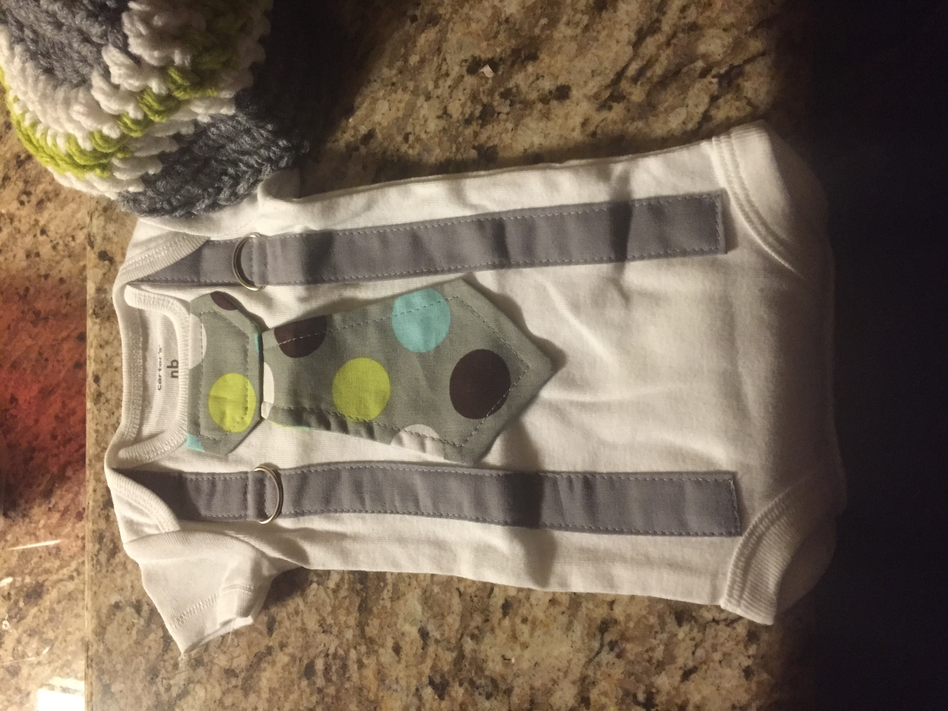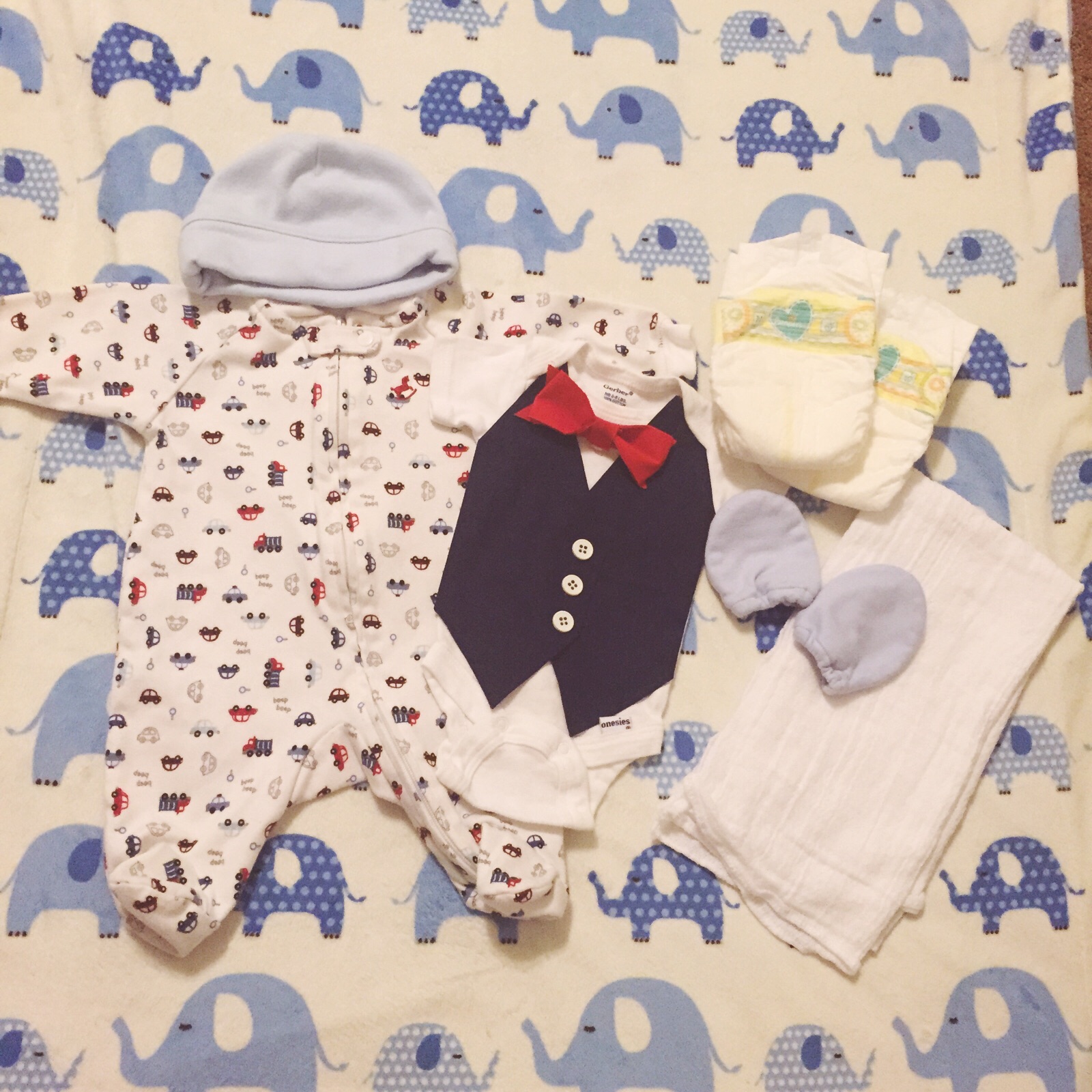 Planning on bringing him home in this. I have grey pants, mittens, and booties too. It's newborn size, so I'll bring some back ups I case it's too small