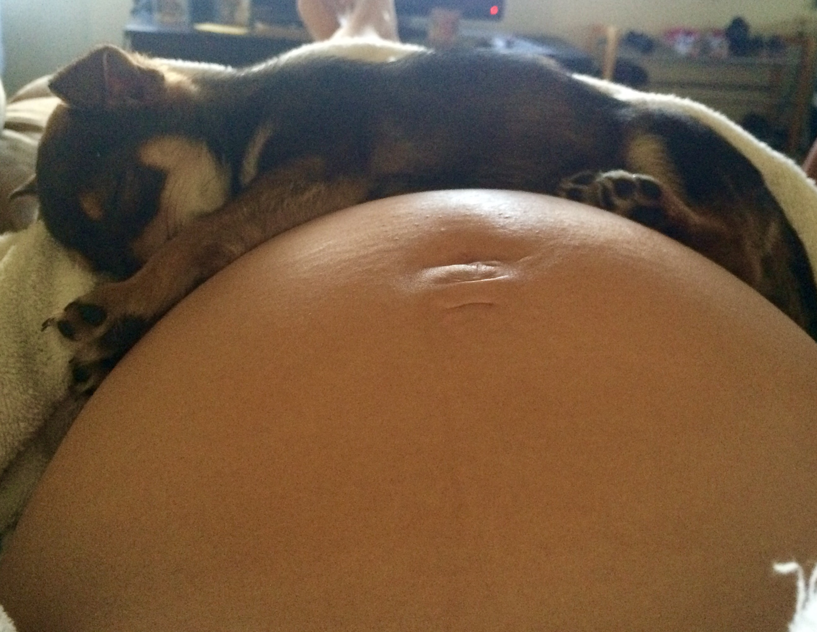 @chris1123 That's so cute -Both your bump and the pup!!! :X Not to mention the fact that they already have a connection! Love it! :X
