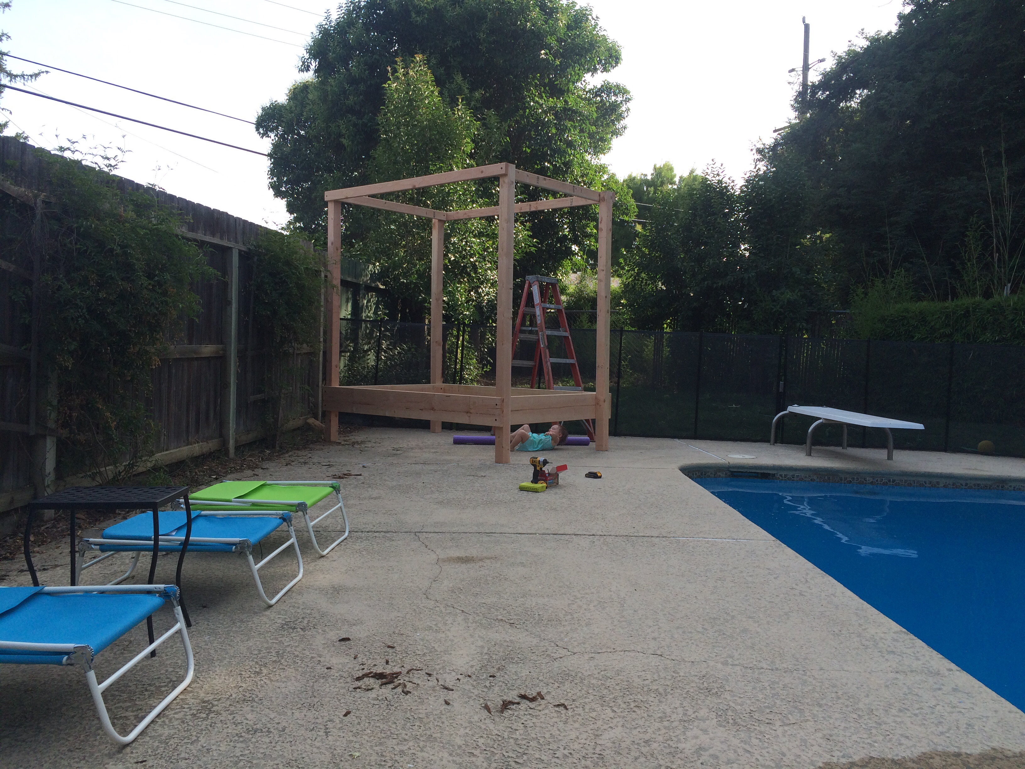 Building things! DH and I are big DIY people. Working on a cabana for our pool. Need an updated pic but here was the beginning. I need to finish sewing all the curtains. We wanted it after we realized we can have sexy out there because our neighbors bedroom window over looks the pool.