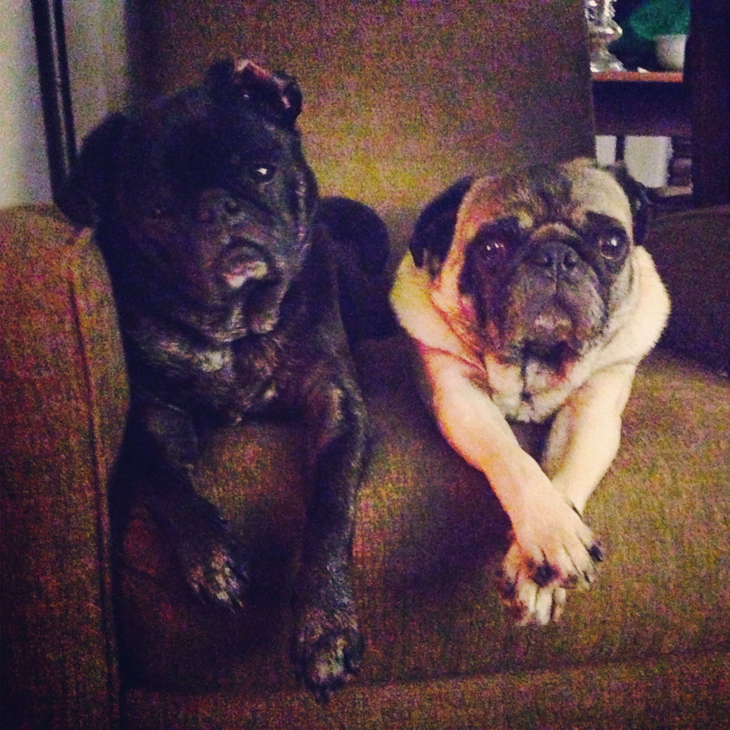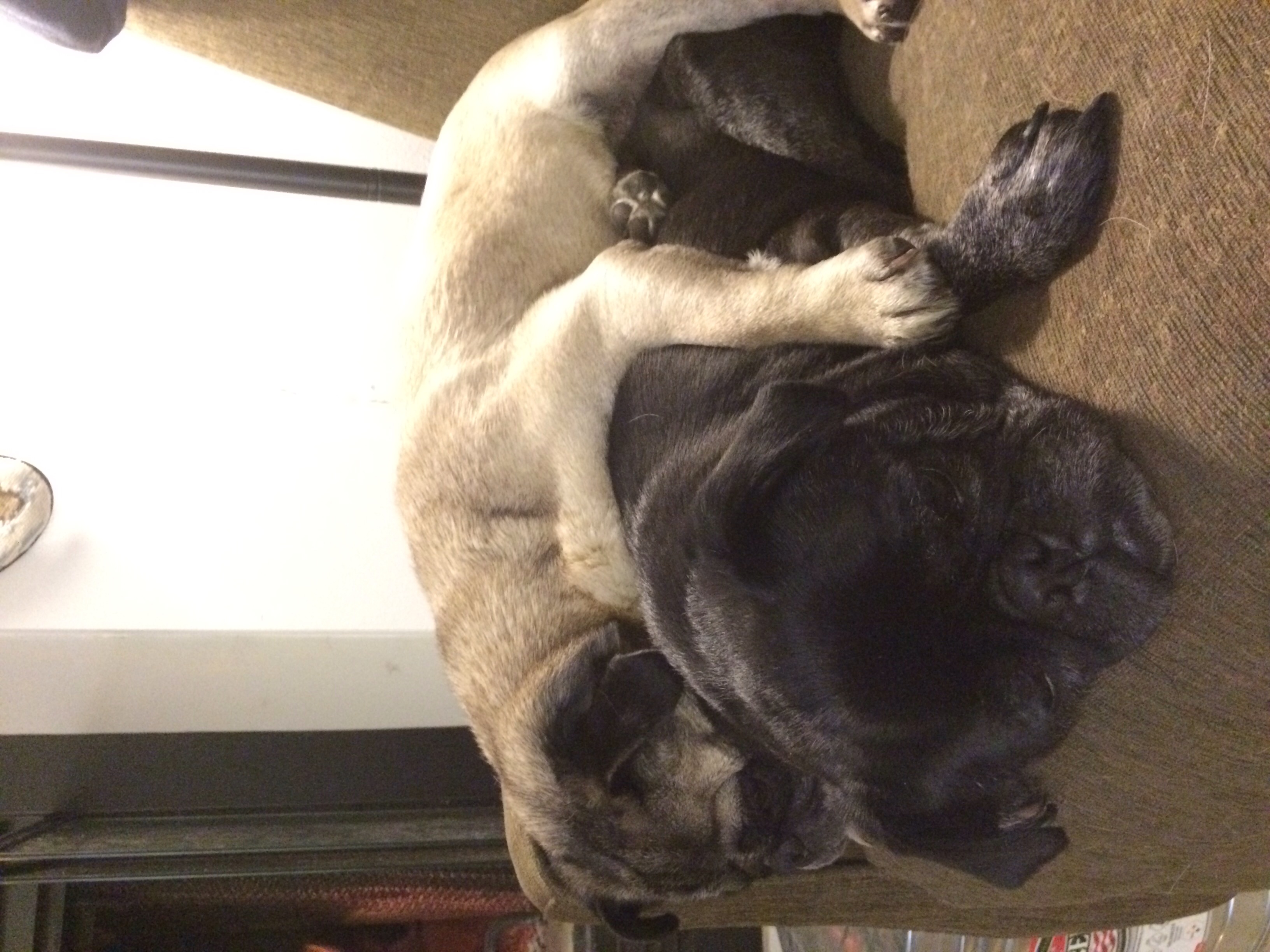 @ecmb yay another pug mom on here (sorry I didn't see before)! We've met a lot of other people that have 2 pugs, but never one that has one fawn/one black one. Aren't they the best?!