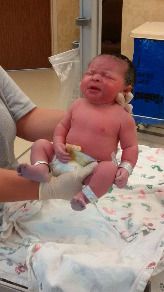 Here is Penelope Shae. She was born on 5/24/2015. She weighed 7lbs 2.8 ounces and was 19.8 inches long. Born at exactly 38 weeks . Water broke, went to the hospital where I was induced. Labor was 11 hours and I pushed for 1 hour