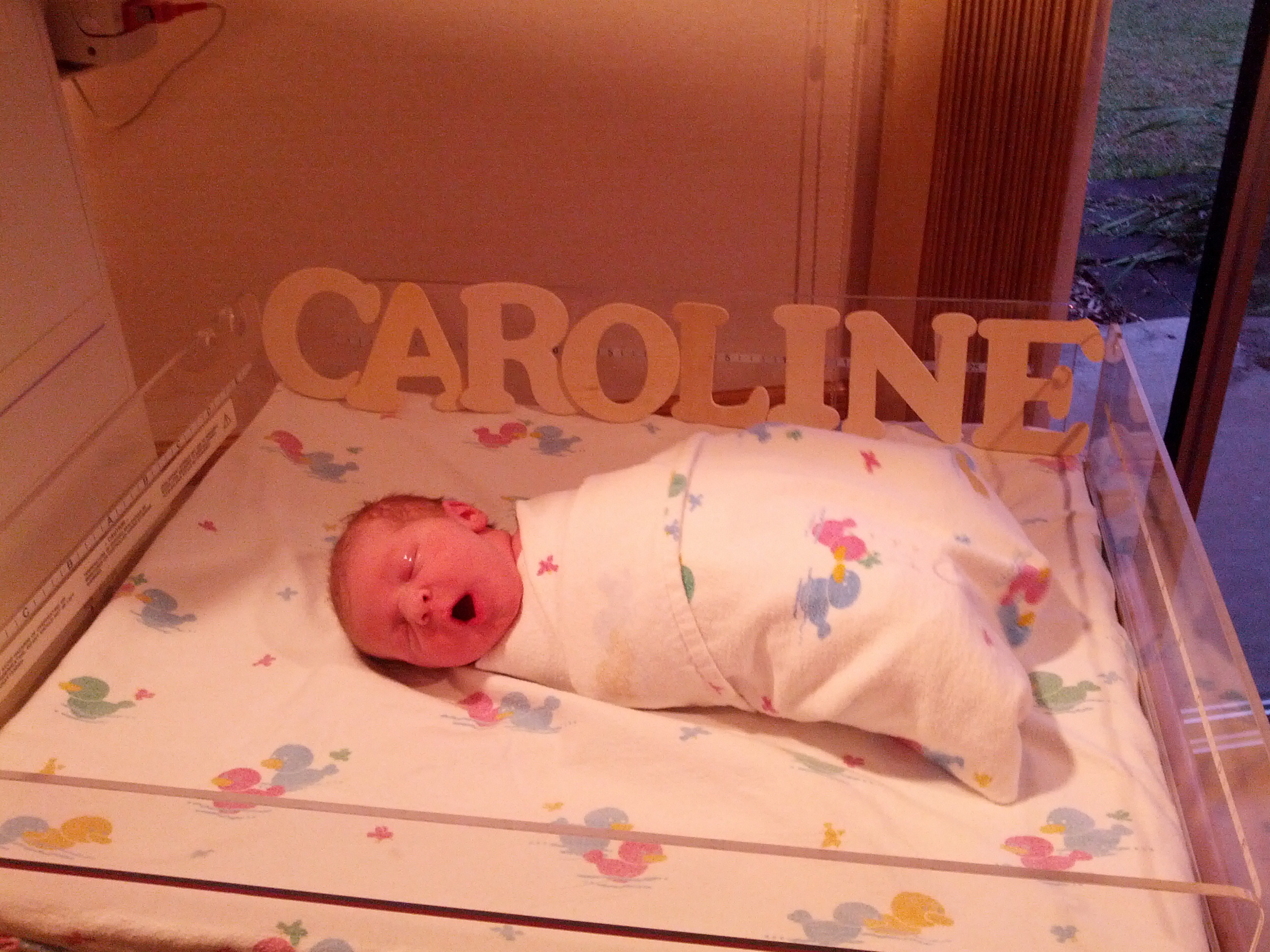 Caroline was born at about 4:30 via c-section. After laboring for 22 hours with no progress I went in for surgery. We're both doing well now. She was due June 3rd.
