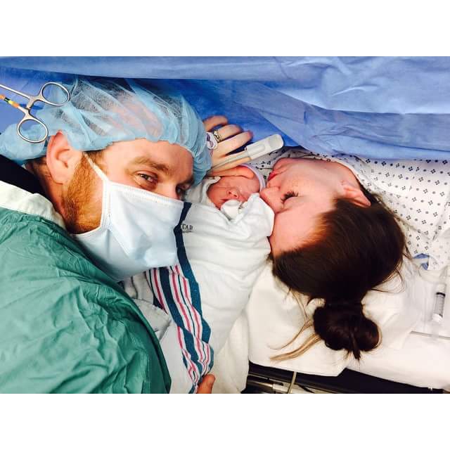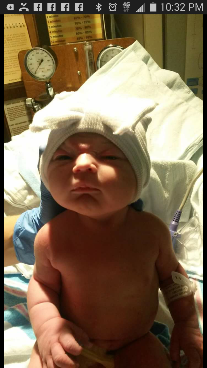 Evelyn Valentina joined our family on 5/25/2015 at 7:32 am. I had been scheduled for a c section on this coming Friday 5/29 because we've known she was breech but my water broke a little before 1 am so we headed into the hospital. After they confirmed she was still breech I hung out in triage while I waited for my turn in the OR. I wasn't having contractions at first but when I did they were bad. Very bad and close together. Finally got into the OR around 7 and got my spinal and after that smooth sailing! Recovery has been easier than expected and Evie is doing amazingly well!