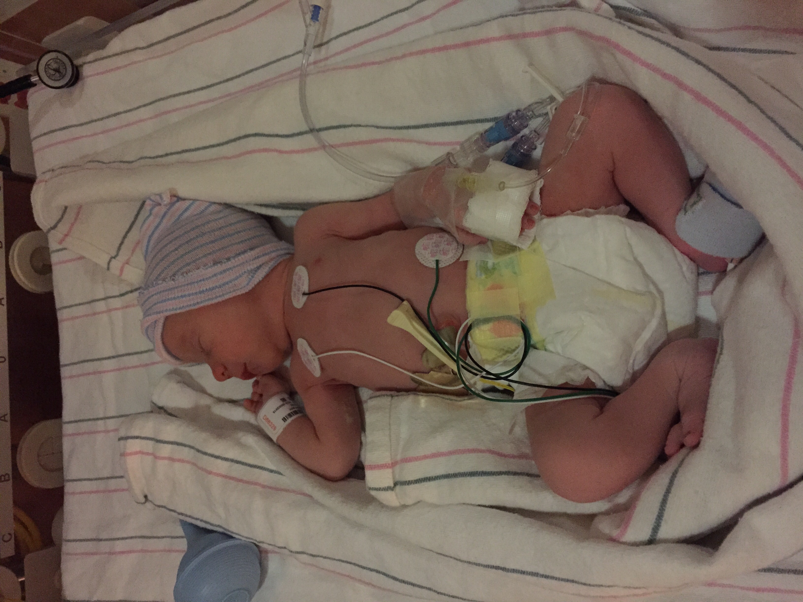 Oliver David born at 36 weeks. Induced and then very quick c section because of blood pressure and developing preeclampsia. 4 lbs 7.8 oz. 18 inches long. Very little guy doing well. On oxygen for a bit but lungs look good! We are so happy!