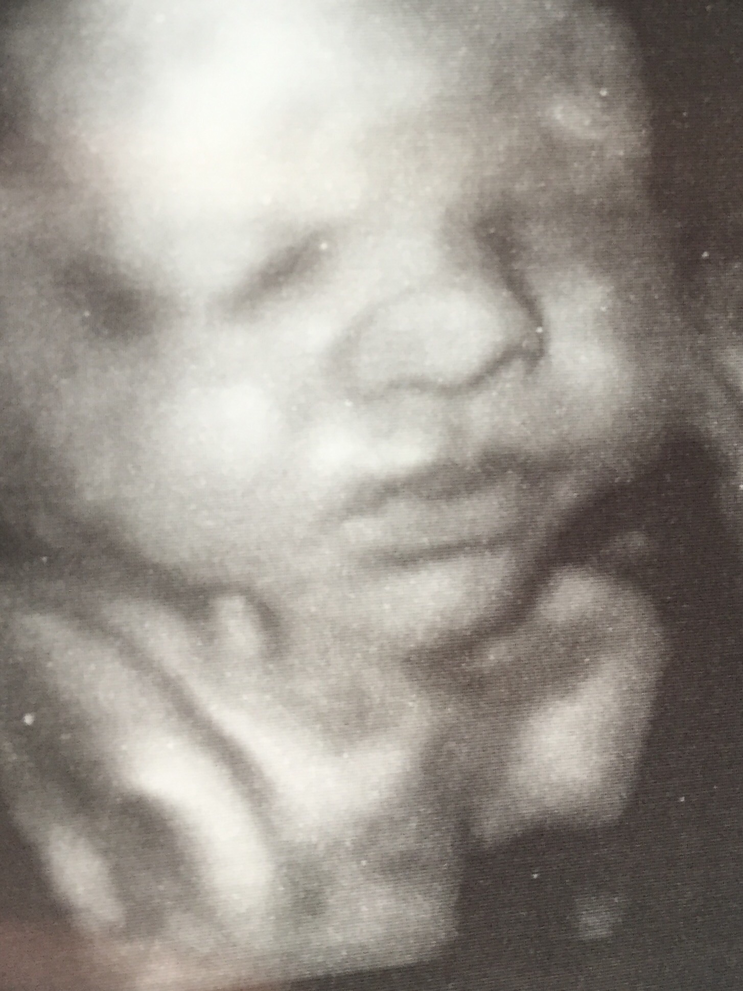 Got to see my little man up close and personal today..36 weeks, head down, and measuring 6lbs 14oz (yikes) he kept smiling and sucking in his wrist.. He's so cute :x