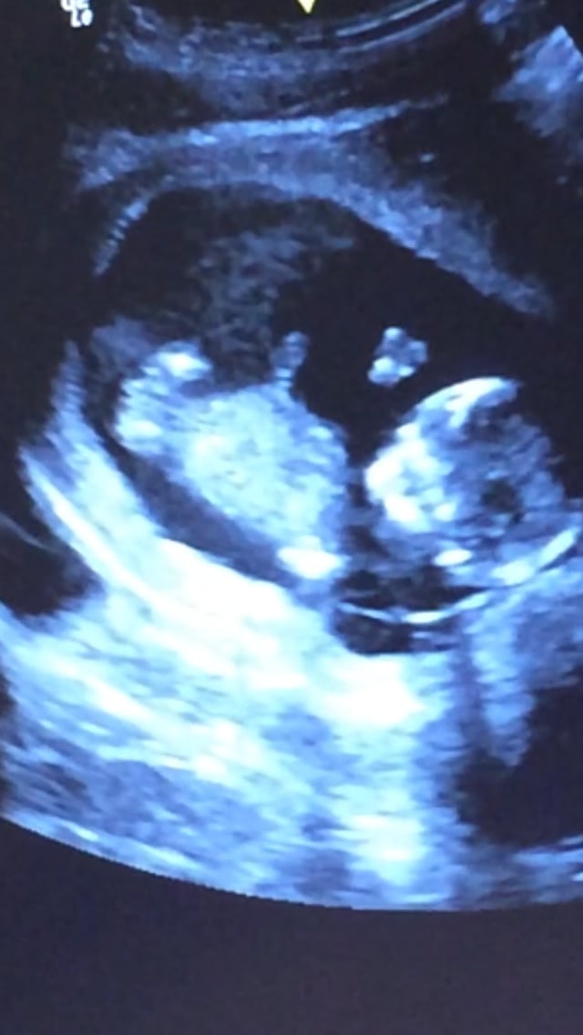 I know this might be way to eager of me to ask but I don't have an a appointment for 4 more days which will be when I find out the sex and I was looking at one of my ultrasound photos from 14 weeks and I'm thinking it might be a girl and wanted to know what you think:-)? Also I know it looks like a profile picture but I assure you it's not the two lighter spots on the left are the bottoms of its feet and it's legs are widely spread open, but regardless it's probably too early to tell.