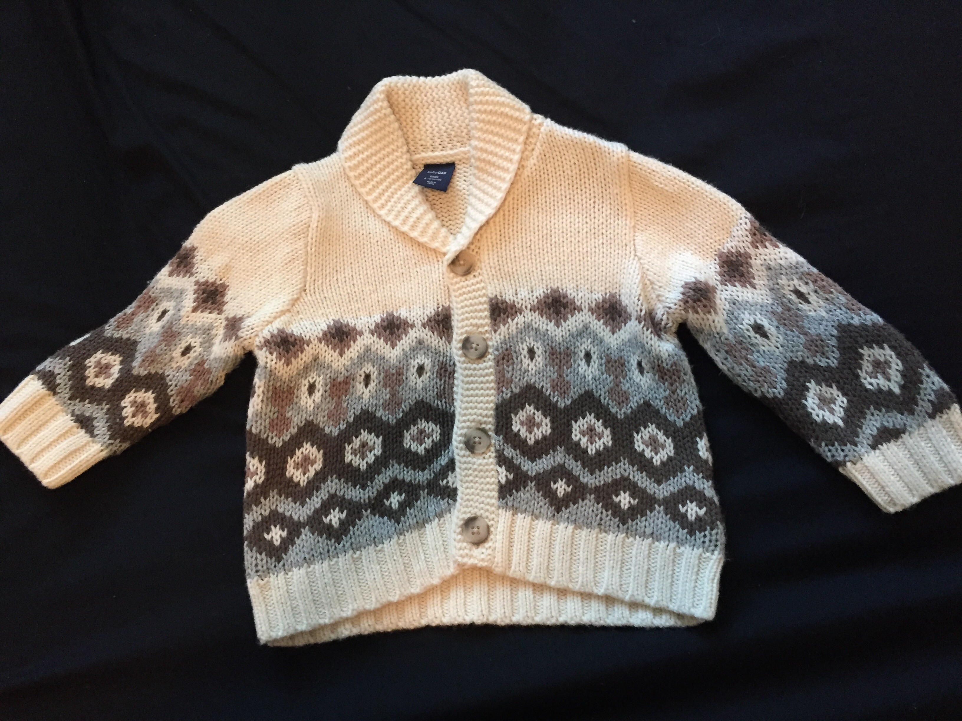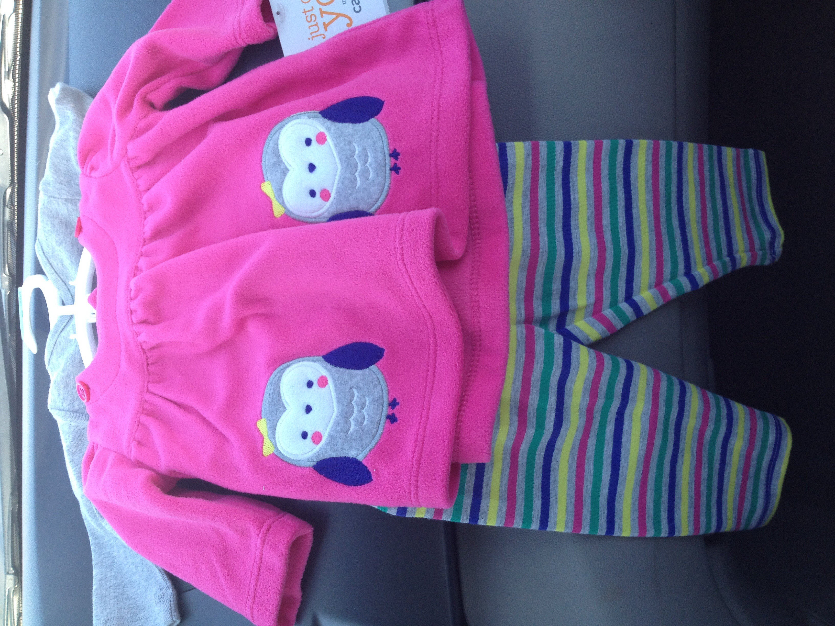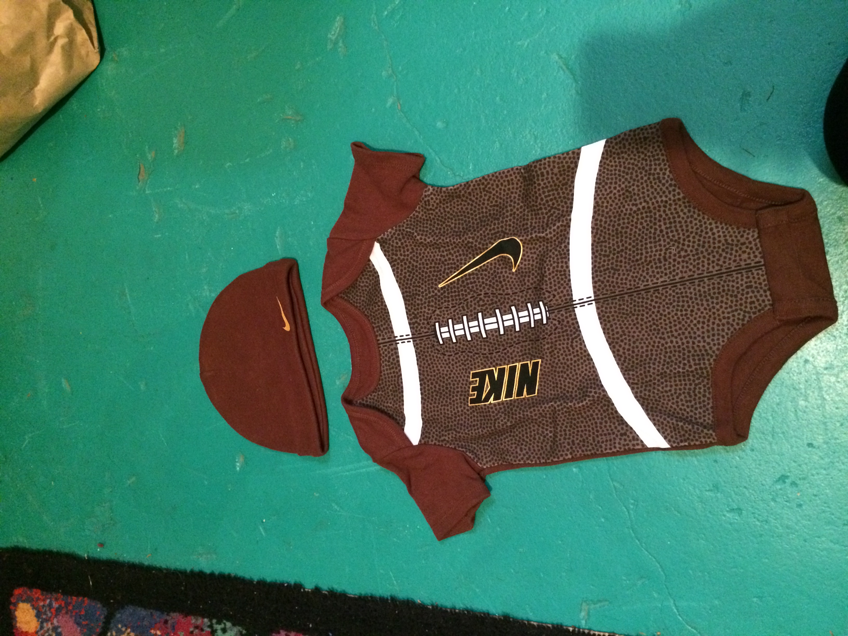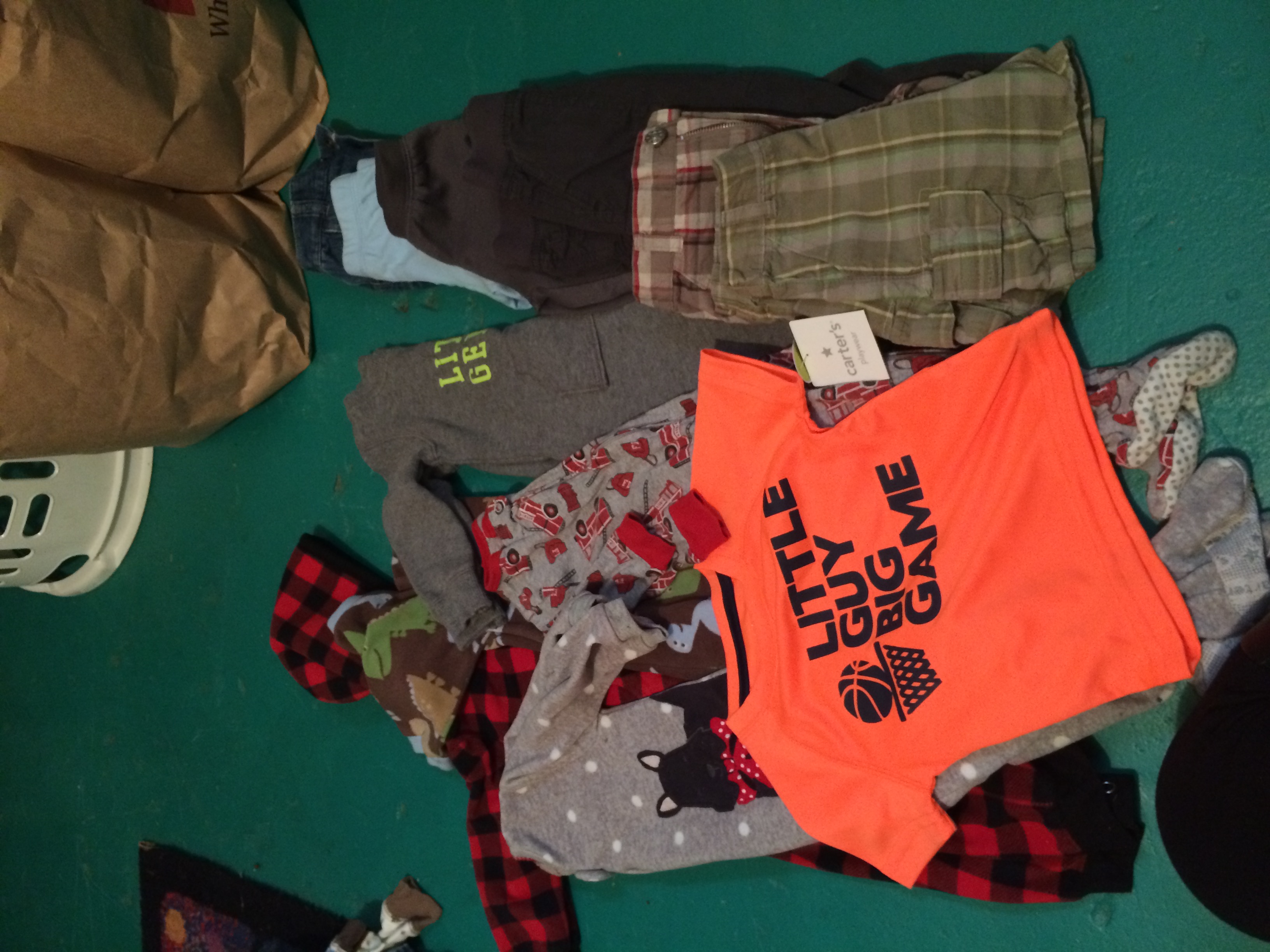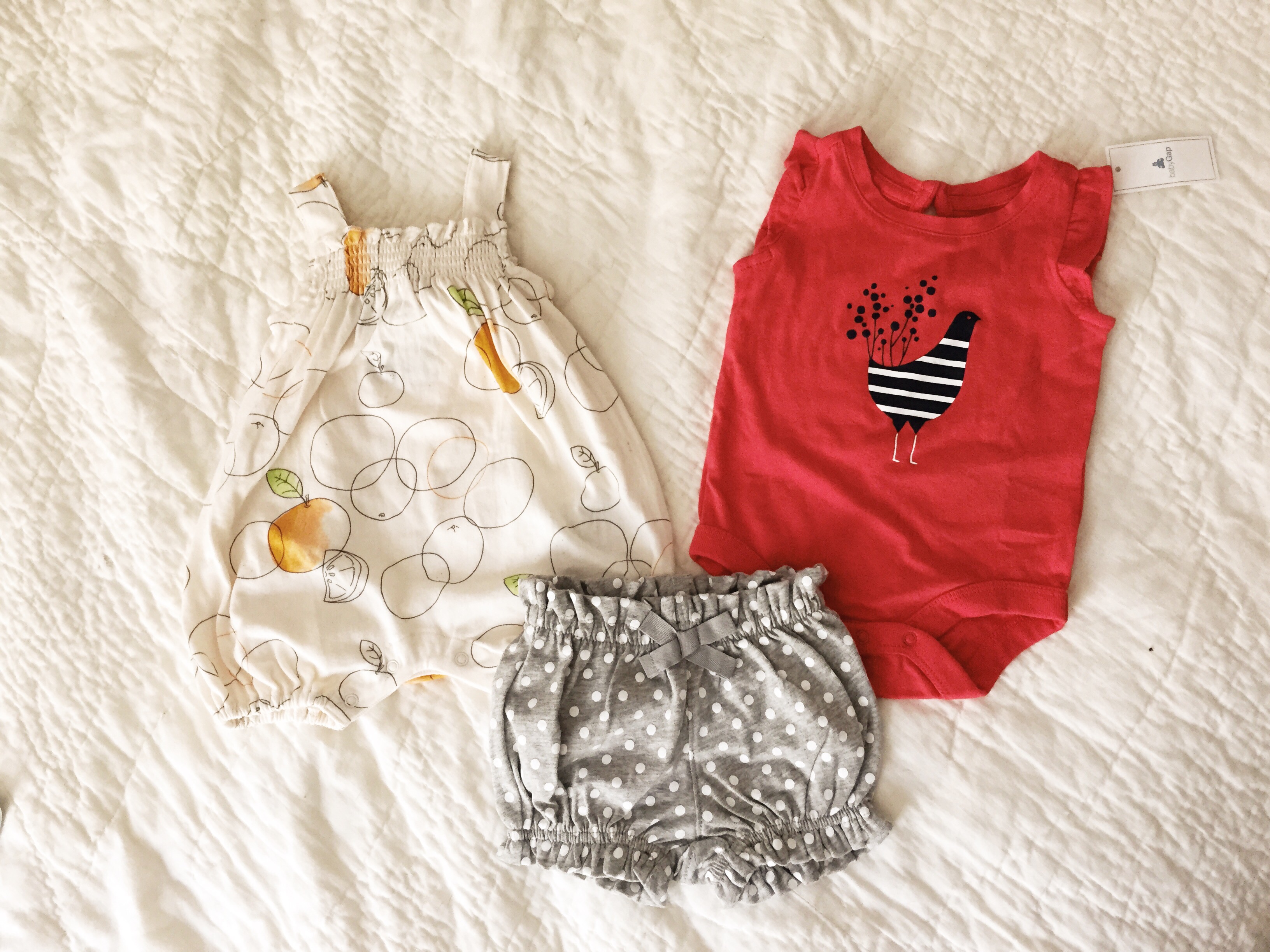 There's a pic of some shirts, a pair of pants, and a sweater that I bought used before I got the big lot of craigslist stuff. The little patches on the sweater of the elbow killllllllll meeeeeeeee. The football onesie was bought before we even knew the gender. The smiley onesies came from a Birchbox limited edition box they did with Baby Gap.