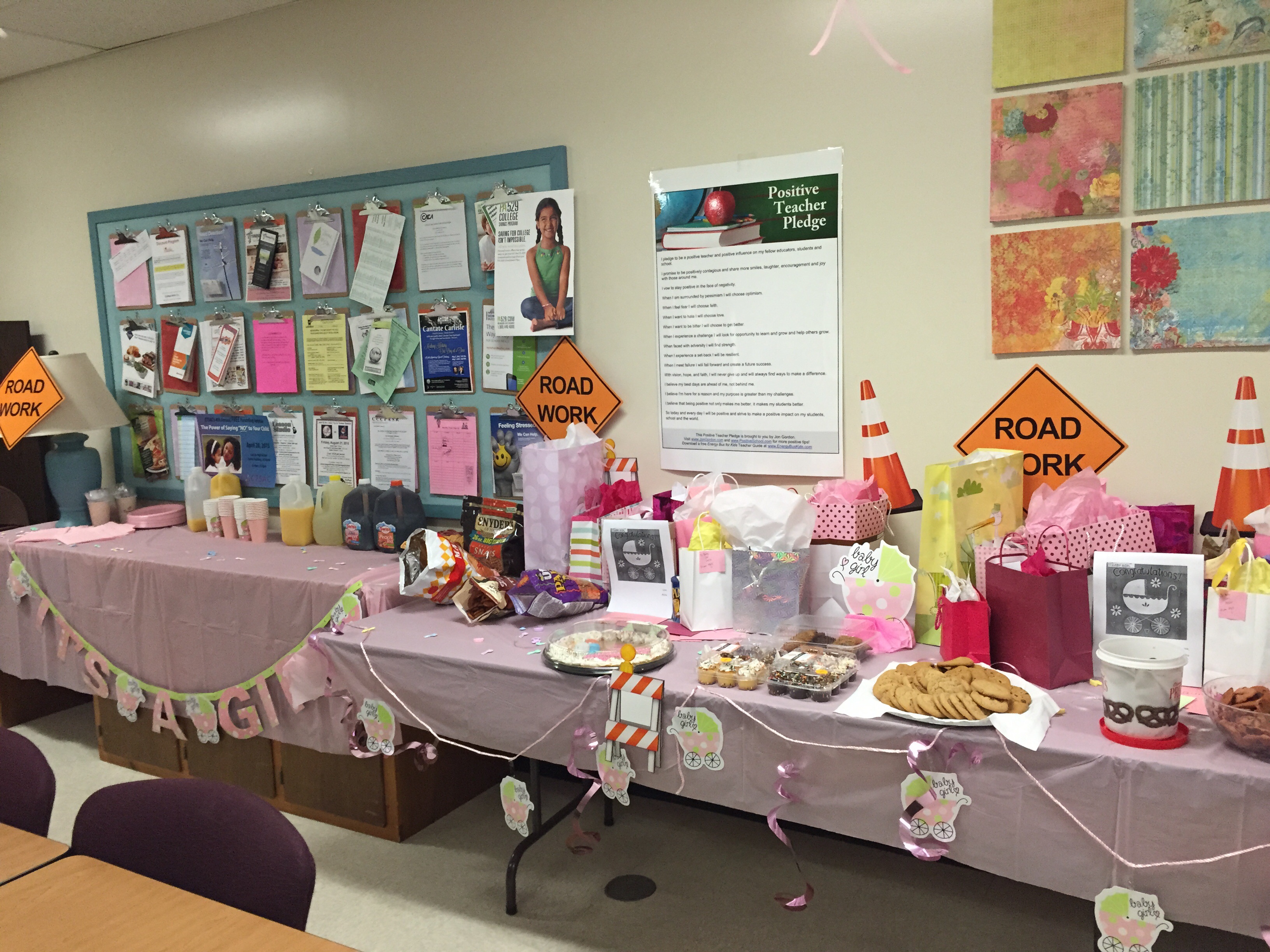 Co-workers threw a lovely shower for another teacher and I this morning. We are due a week apart (I'm on the left) and are both having girls. It was so incredibly sweet and absolutely made my day!