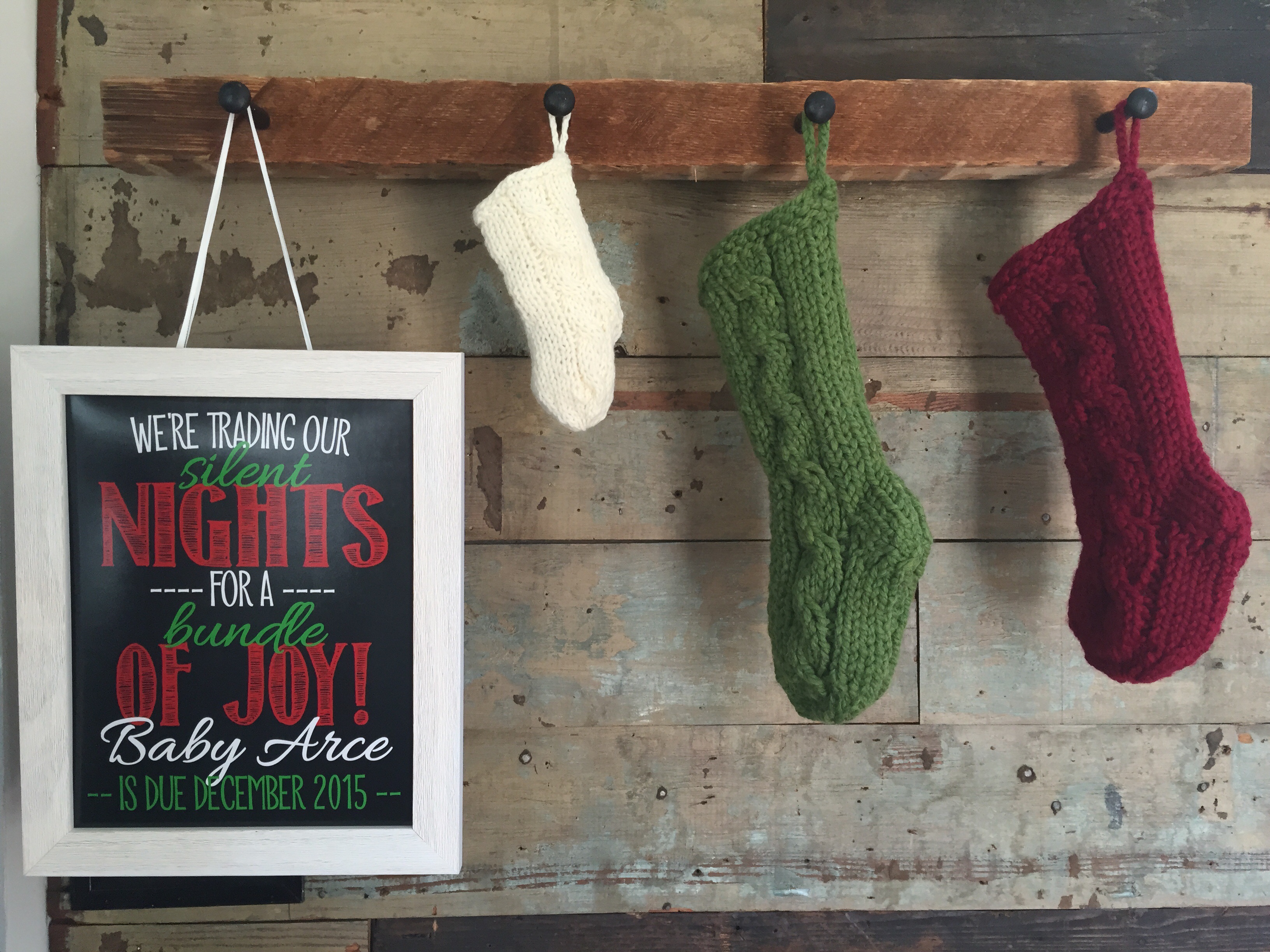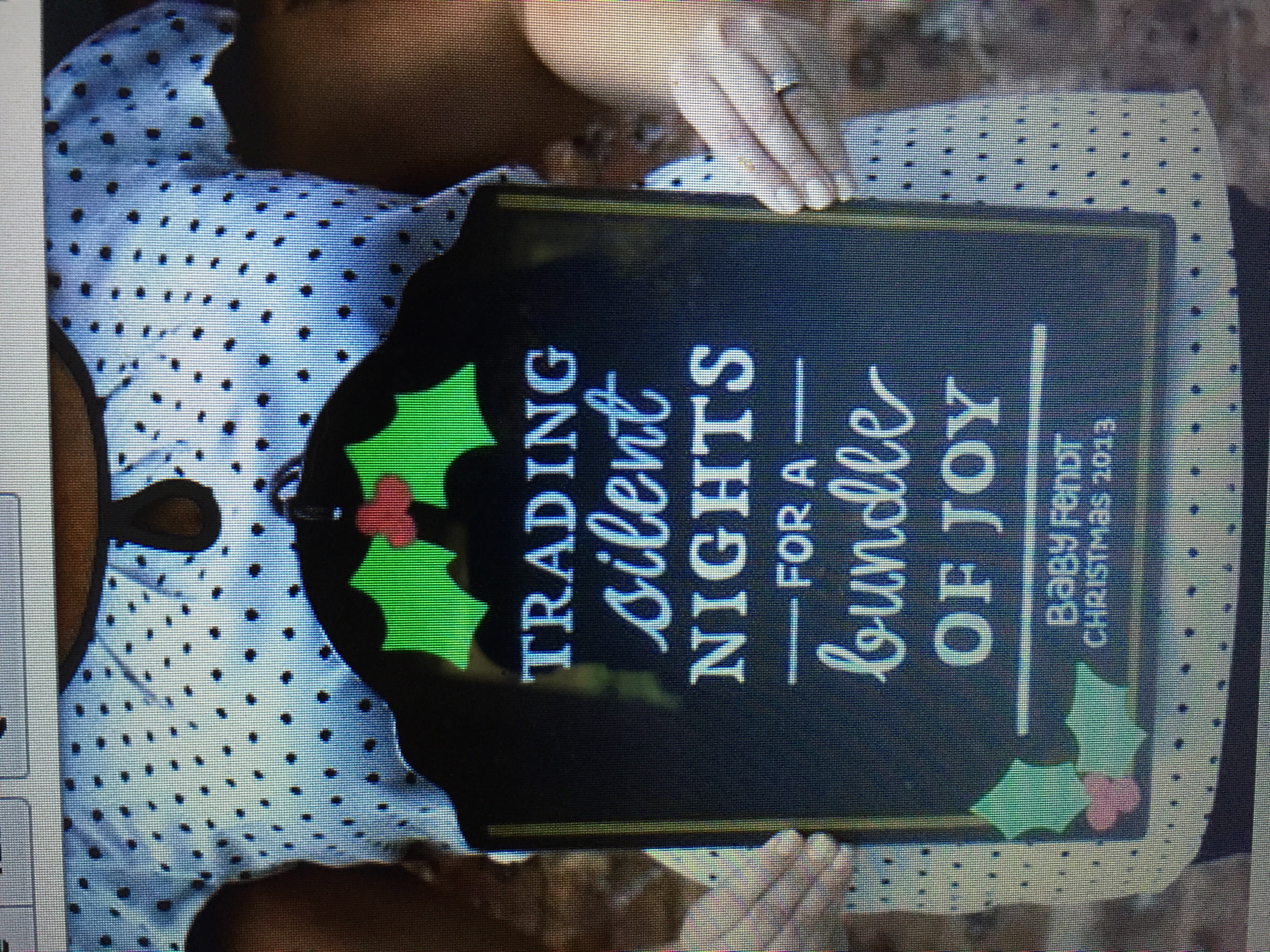 So cute! I saw one I really liked on Etsy that said "This December we'll be trading our Silent Nights for a bundle of joy".