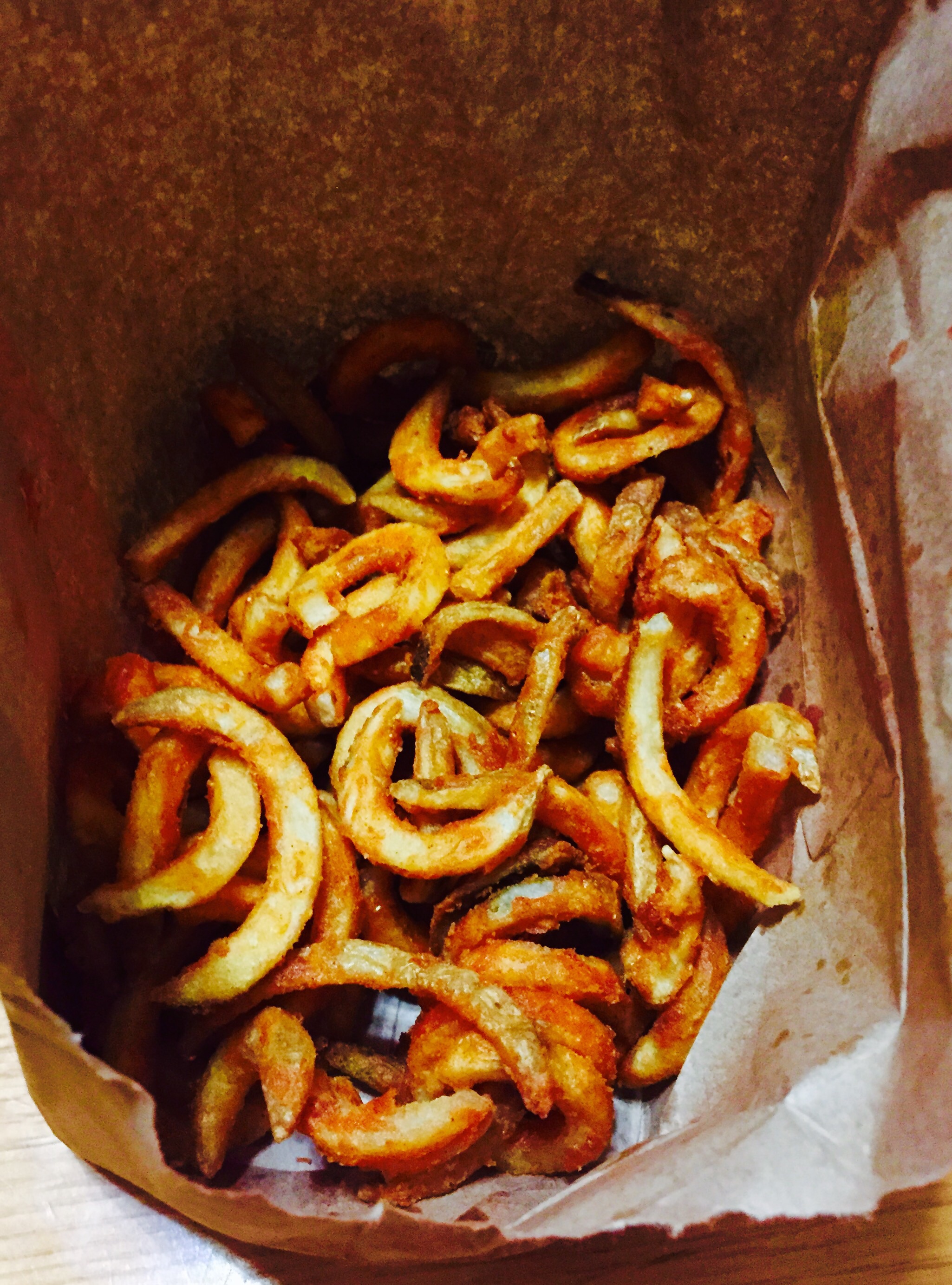 I have been dying for the seasoned fries from the barbecue place in town. The meat there is good, but I would walk over hot coals for these fries even before getting ktfu. Now Im seriously considering ordering online and getting dh to pick them up on his way from work. Hand cut fries seasoned with the amazing dry rub thats usually used on their smoked brisket...