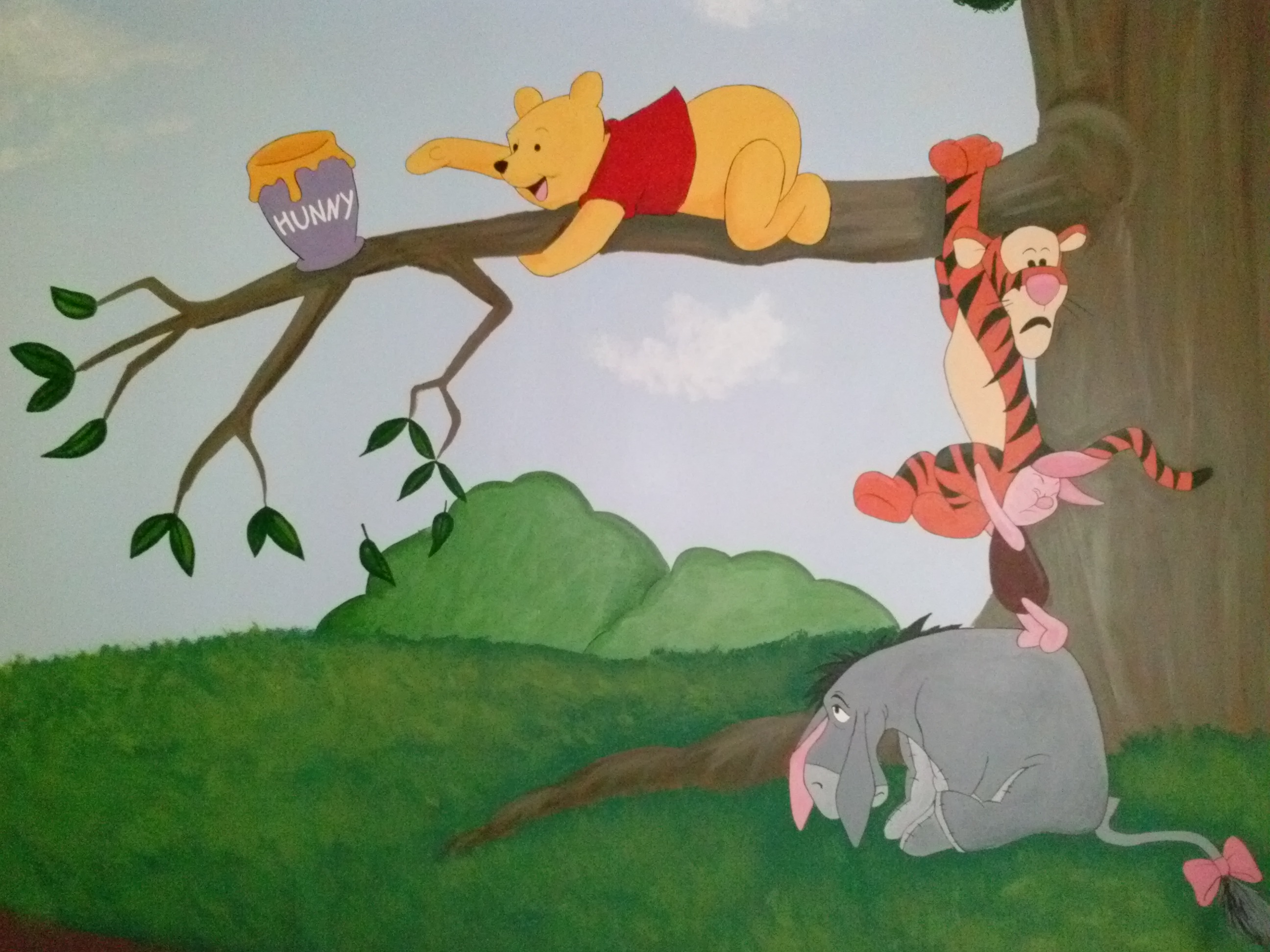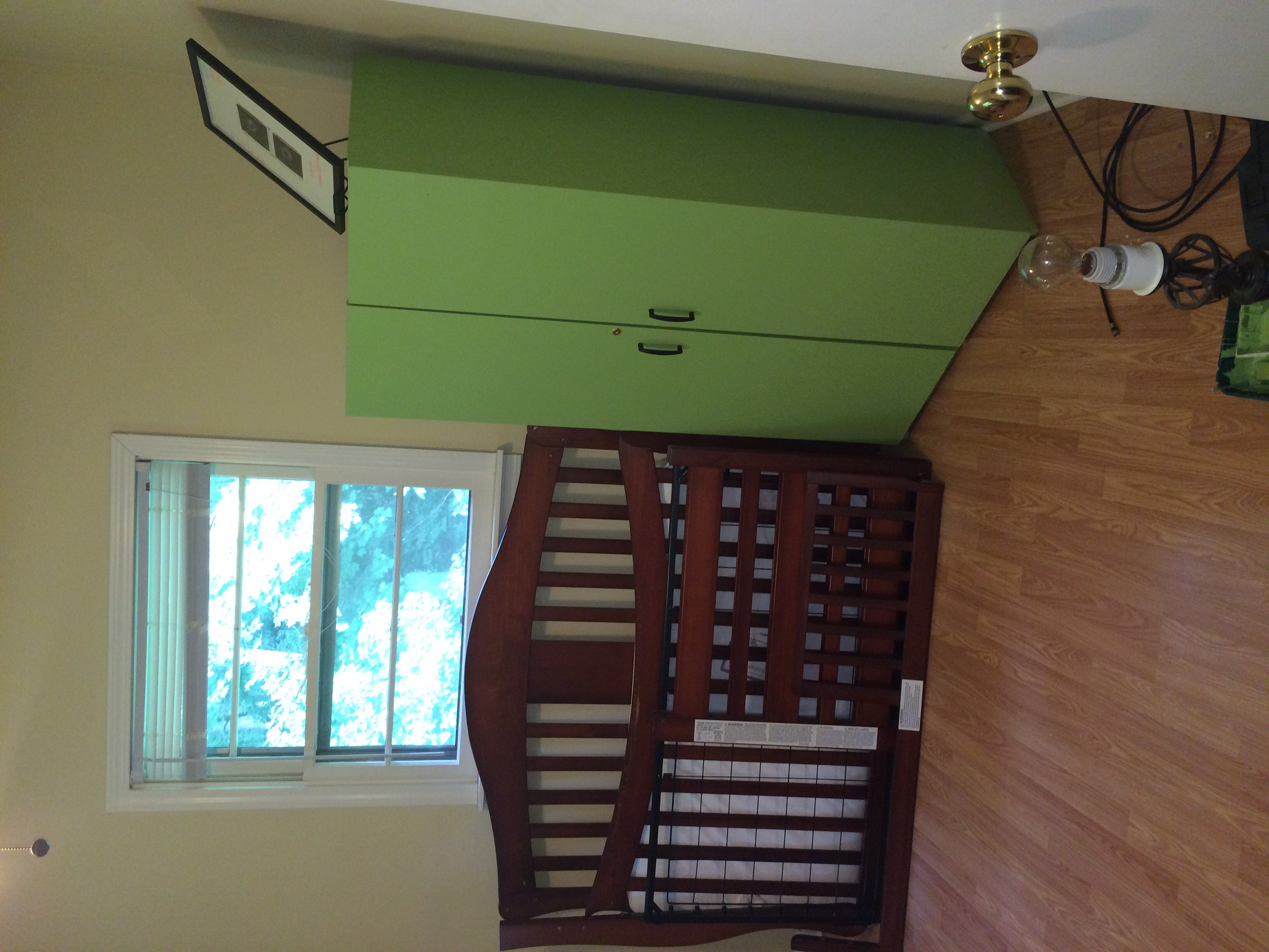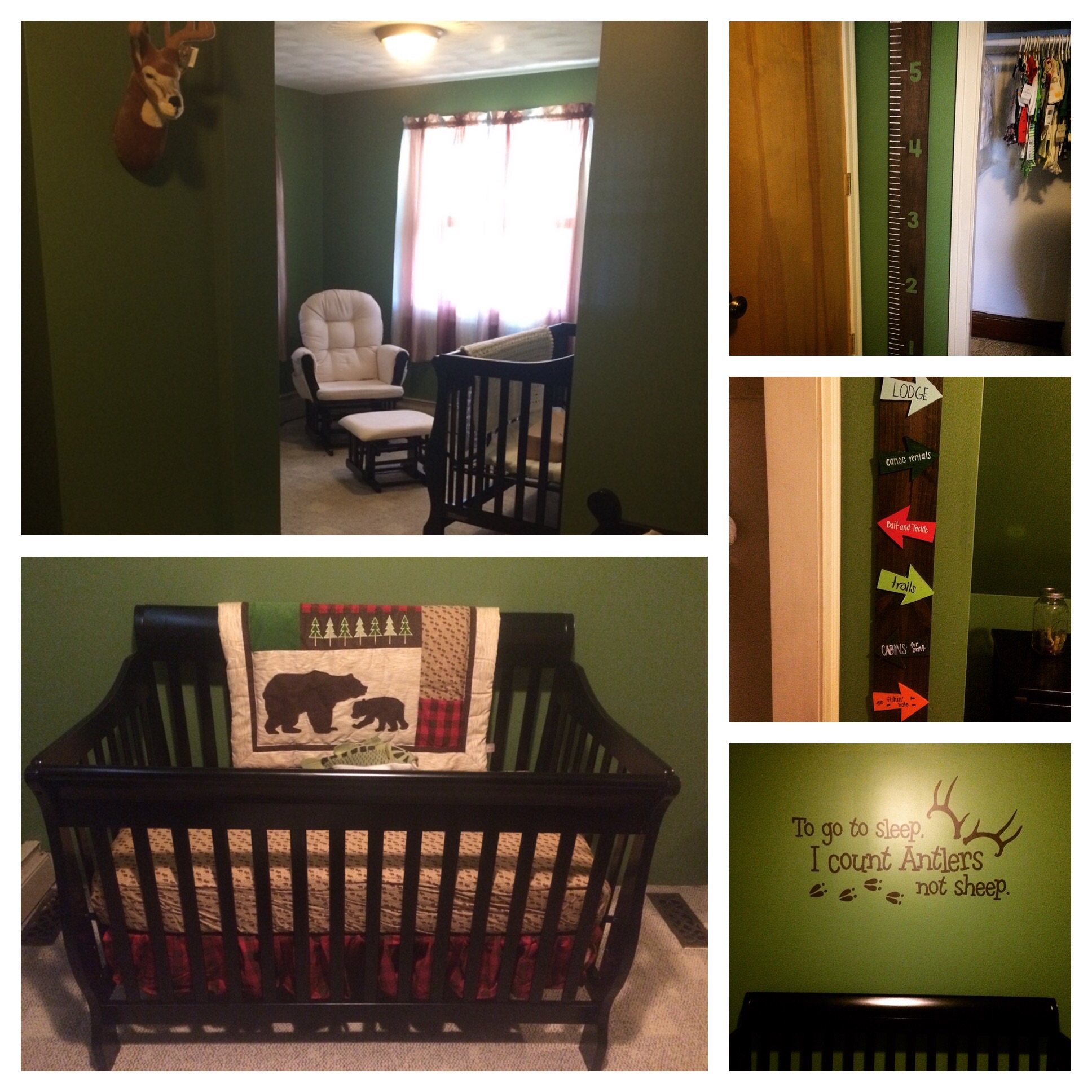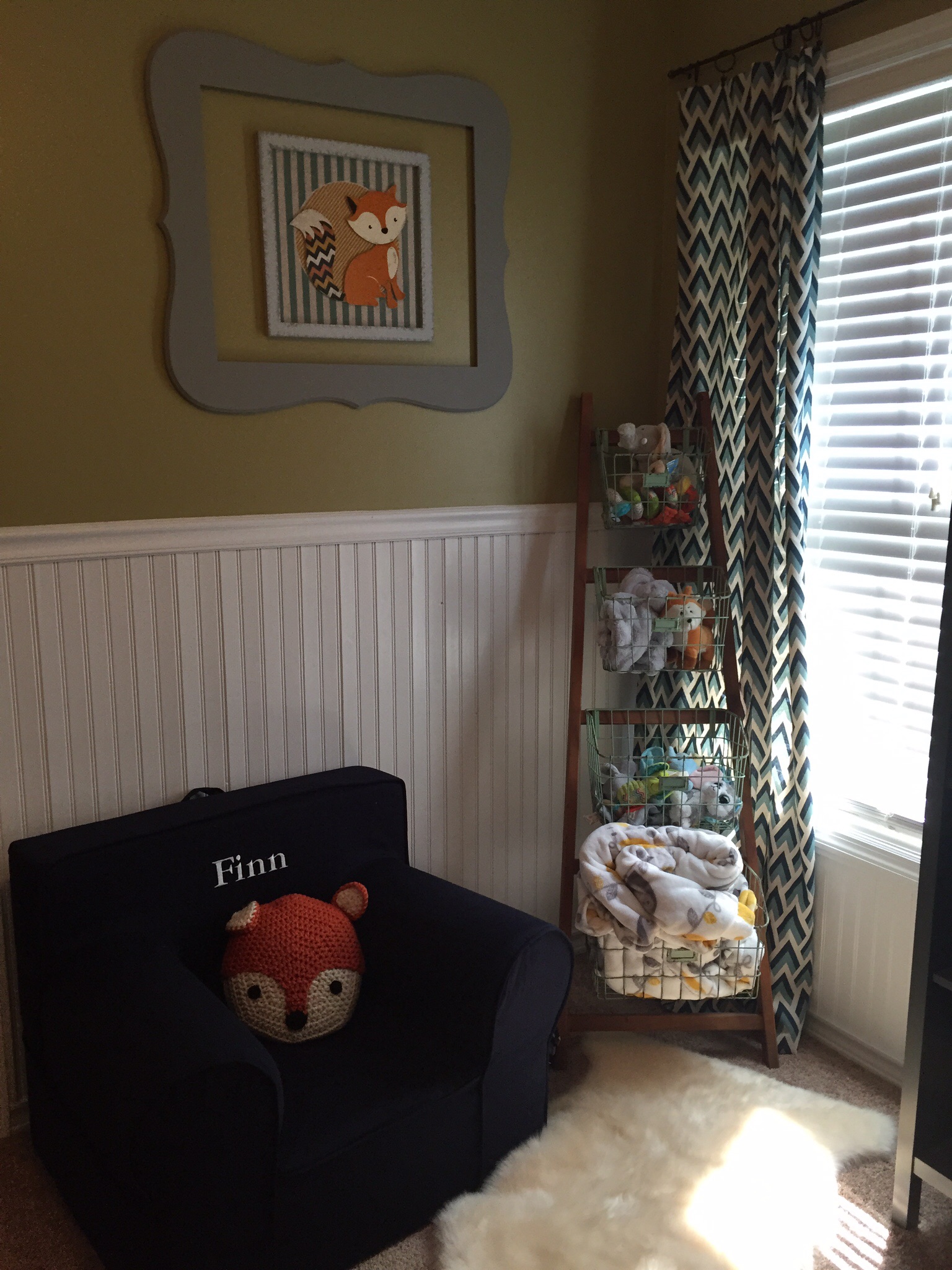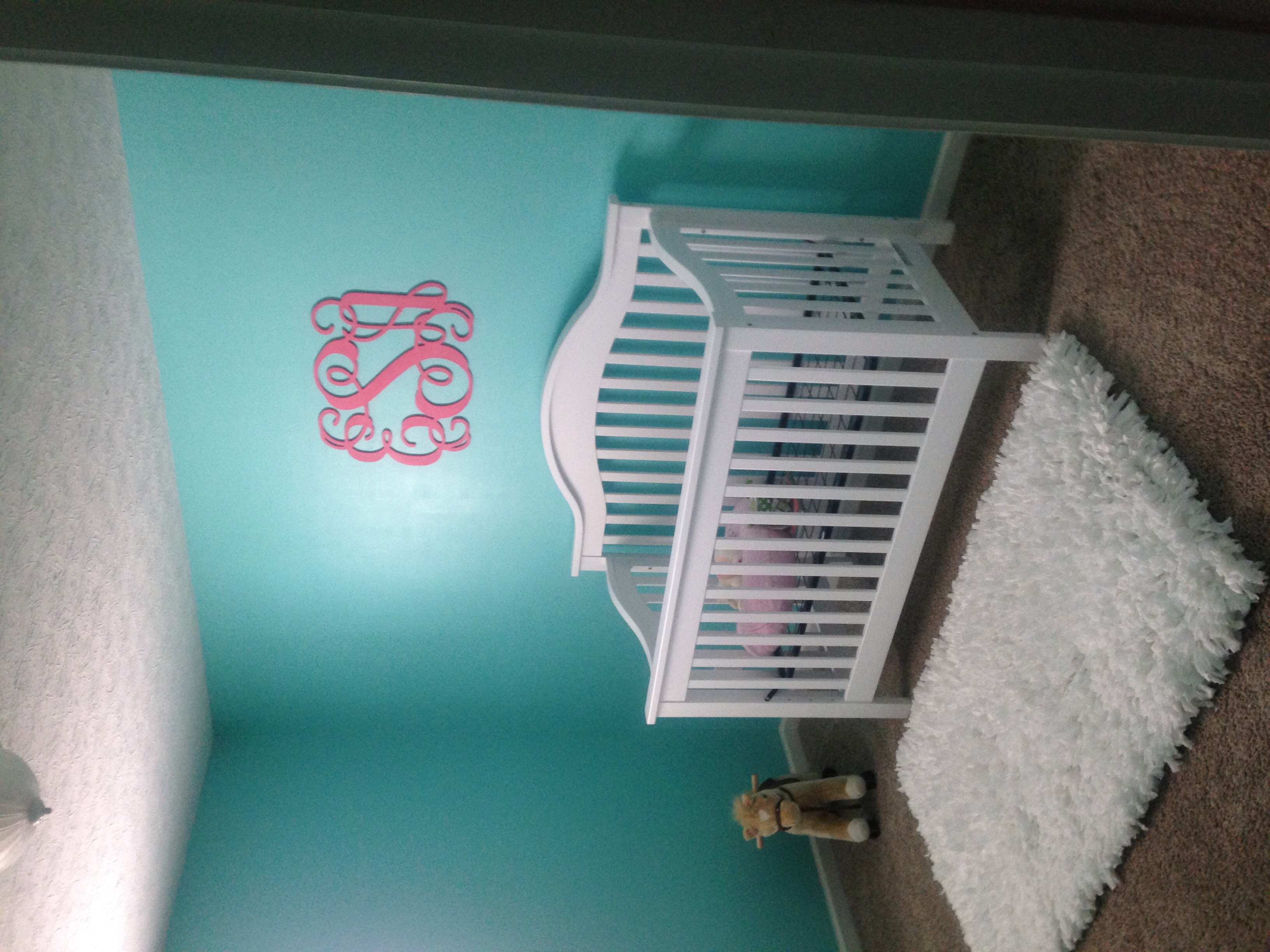 Here is one wall. Haven't finished the rest of the room but have the crib and dresser set up. I need to hang a small shelf near the dresser/changing area.