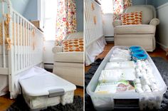 I'm definitely using the "under the crib" storage idea. I'm going to do the same thing with the space under our bed. It will be perfect for extra diapers, wipes, out of season clothes, ect..