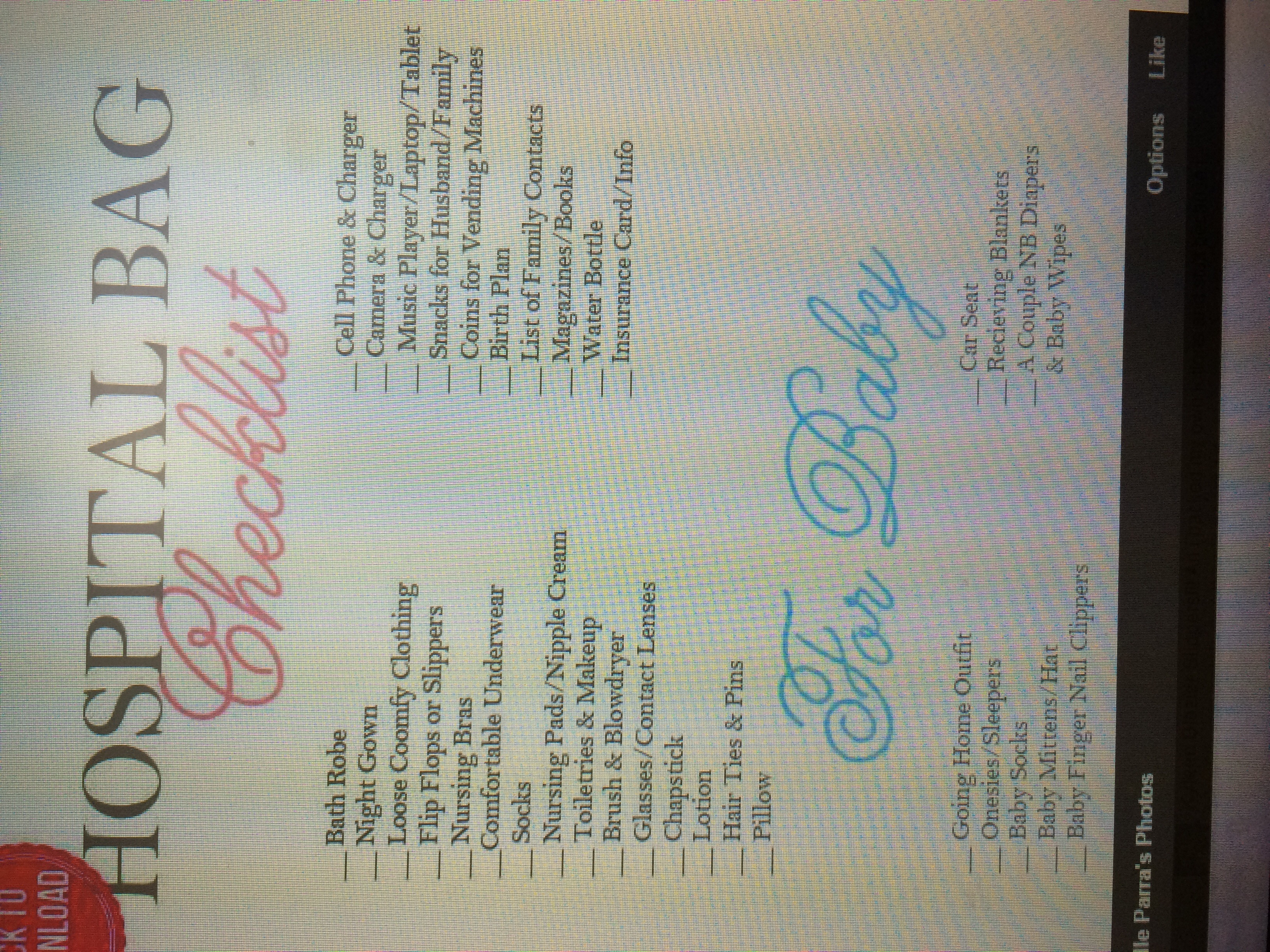 Re: Baby Bag For Hospital!