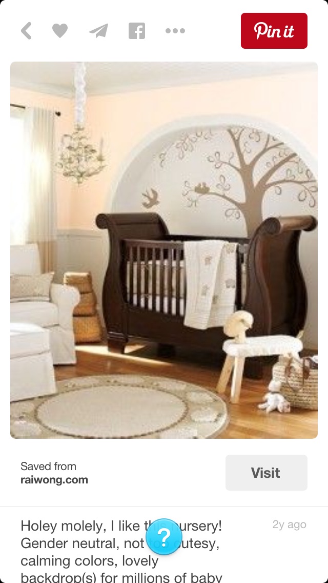 I know it's a little early to be painting the nursery, but it's still fun to start planning! I'm pregnant with my first and we have decided not to find out the sex. Anyone have any colors/ideas/themes/Pinterest photos you want to share? I kind of like these two from Pinterest, but with something more colorful above the crib in the one with the white crib.