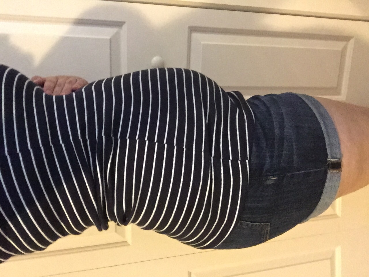 I'm definitely showing (to me) but the only bonus of being a little overweight is no one notices an extra gut! In a fitted top like today though, it's there.
