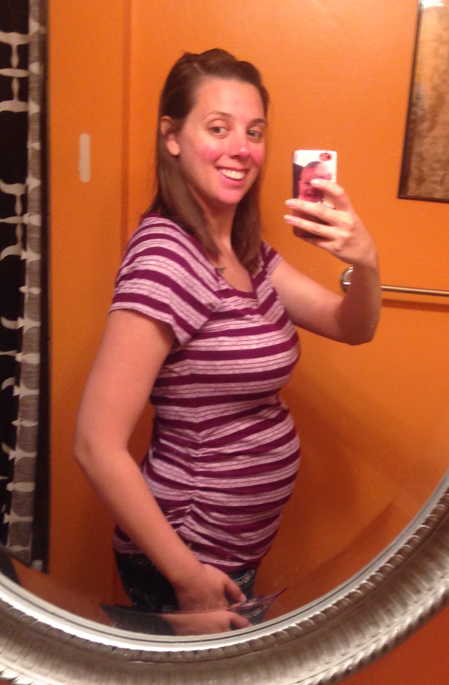 I guess I'll leave a pic too, though I wouldn't say I've popped by any means. I'm a lot further this time than I was with DD. I looked like this around 20w with her.