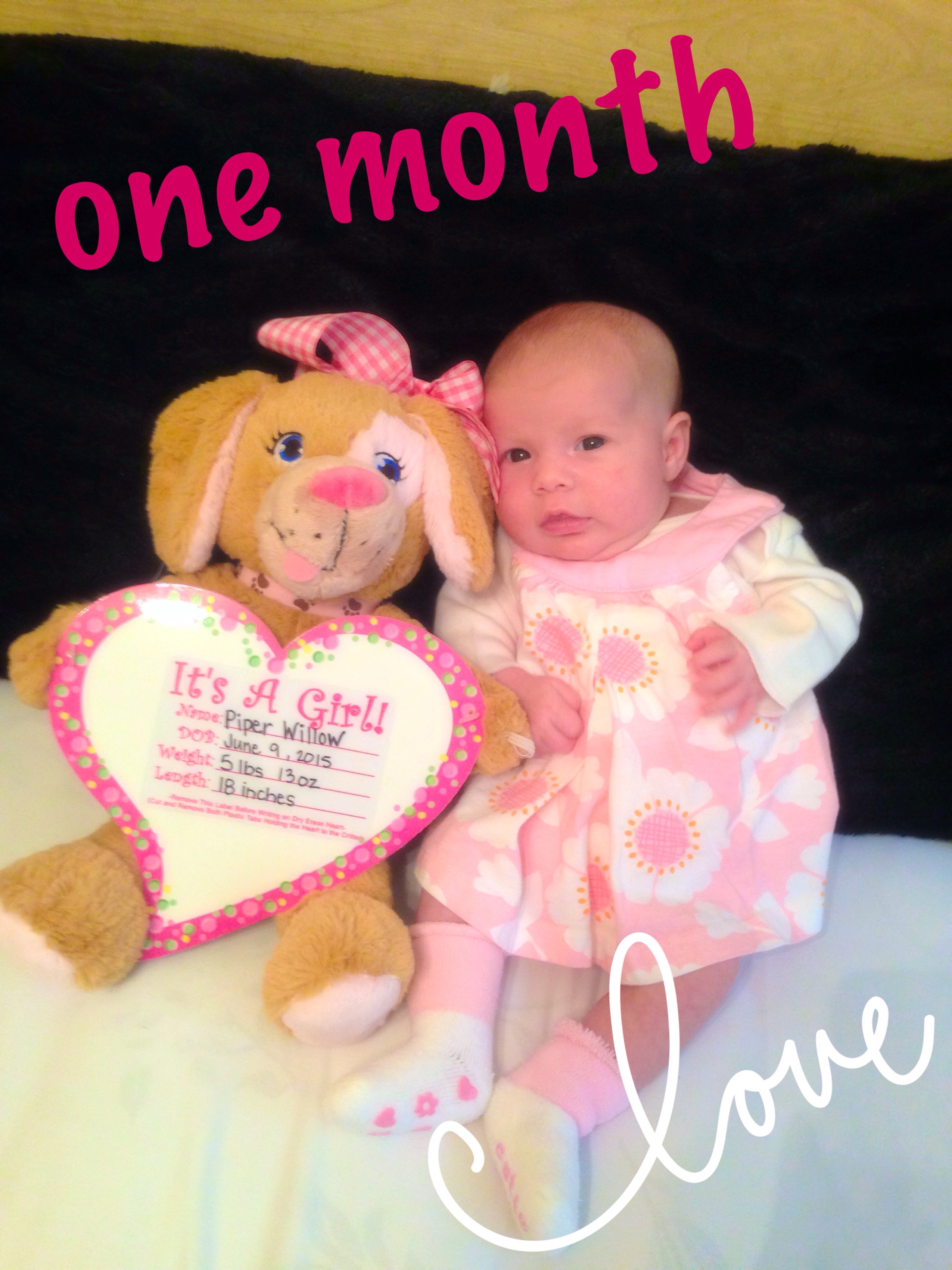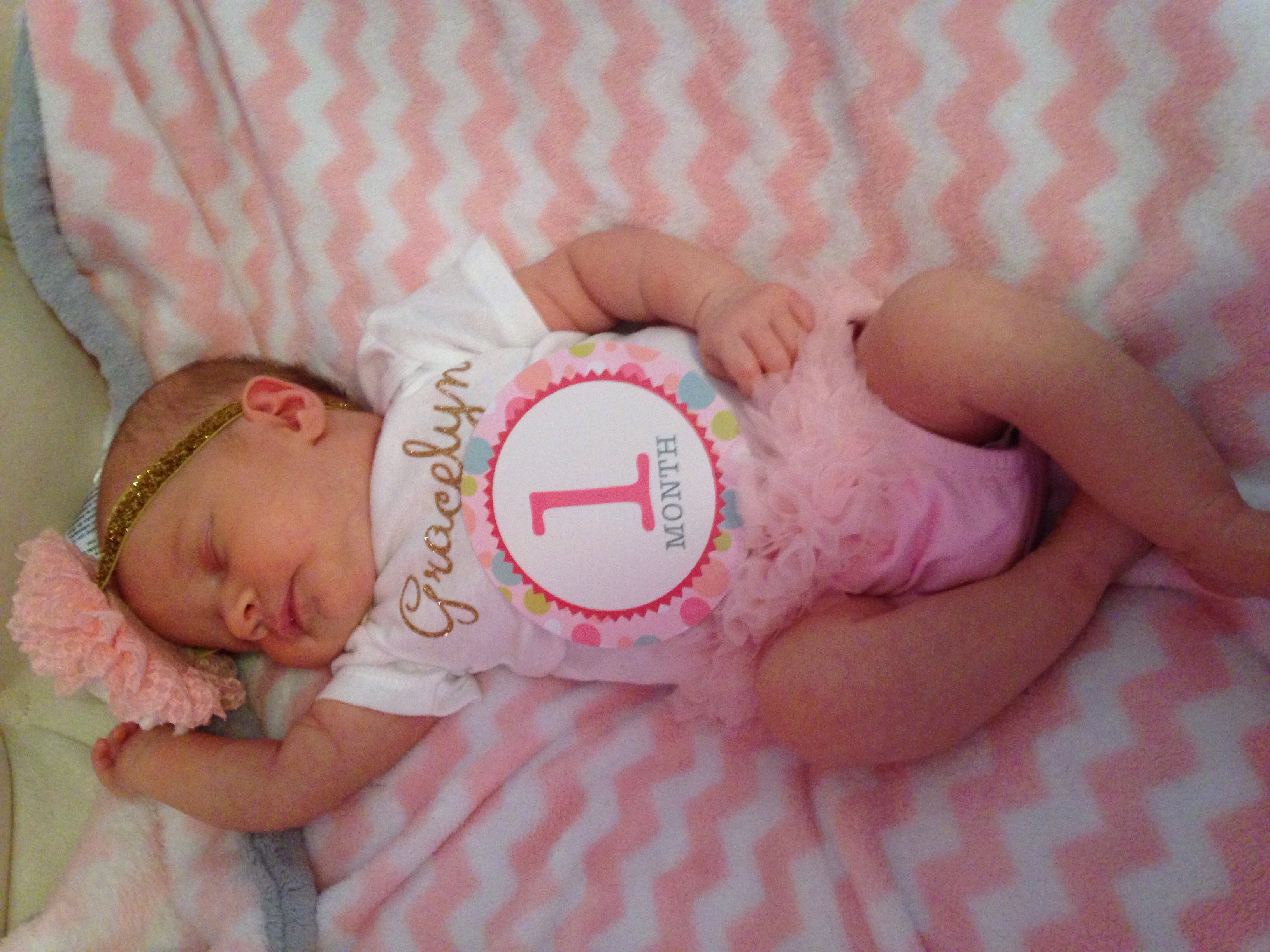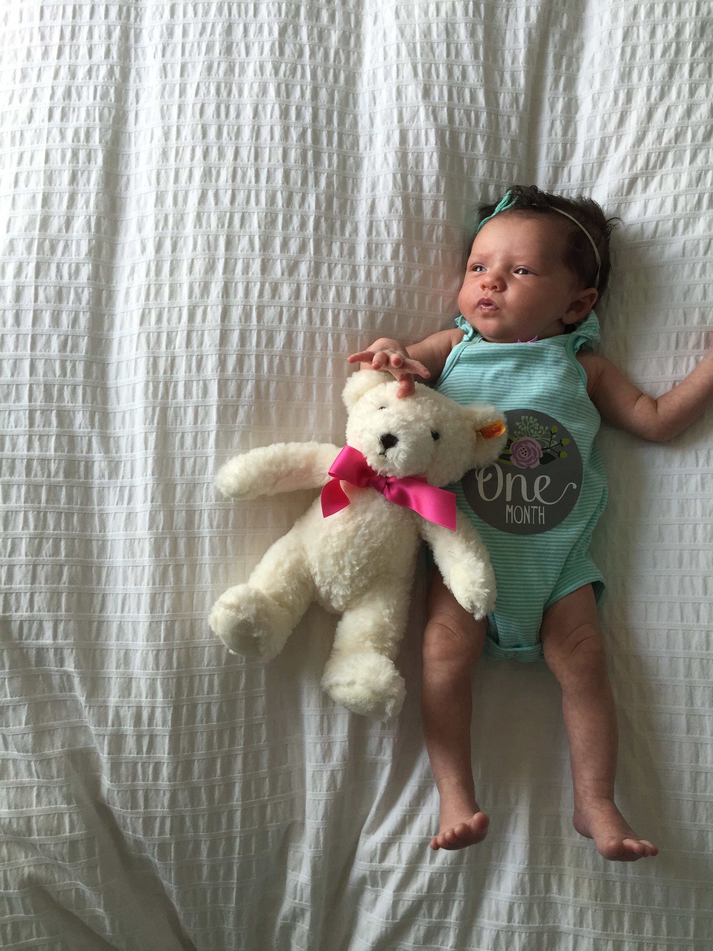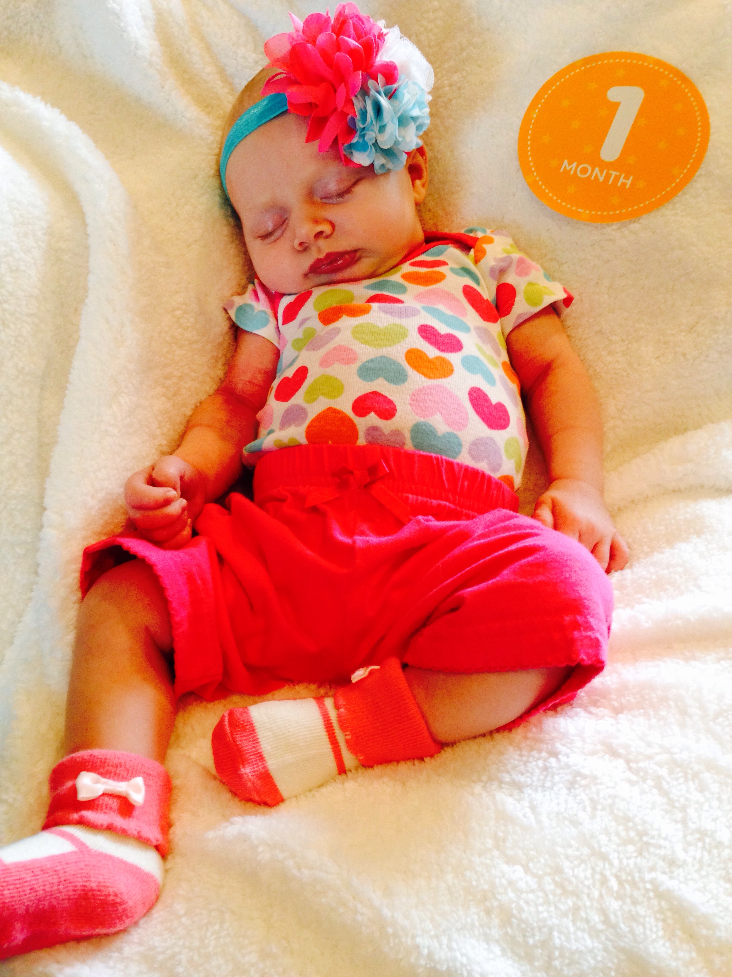 One month today!!! She needed premie clothes for the first week or so because she was so tiny and now she's already outgrown most of her newborn size clothes!!