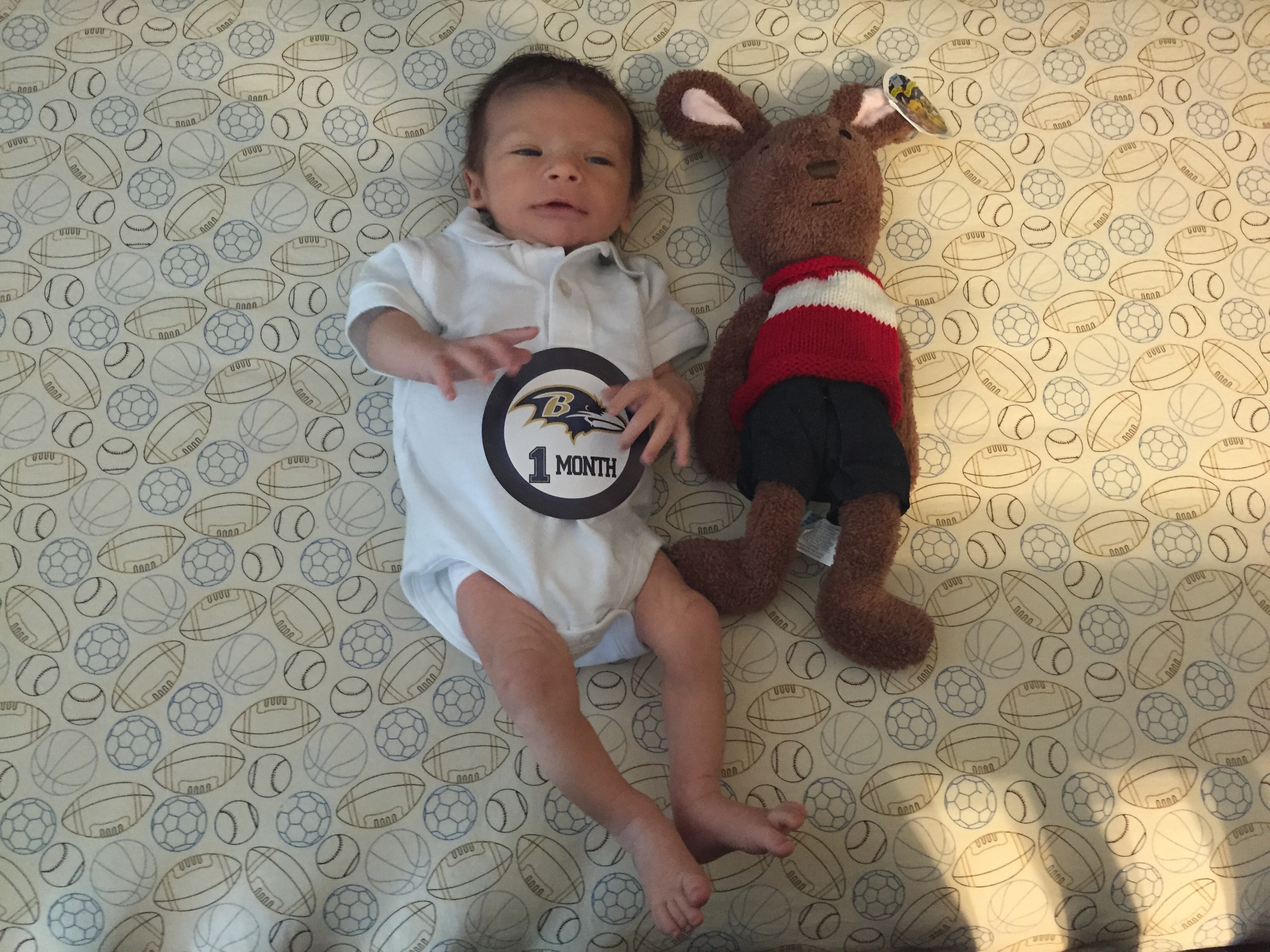 One month today:) It just hit me that he'll never be this little again. The first month has been difficult, but this is a reminder I need to cherish all the beautiful moments I spend with him while he is still so cuddly.