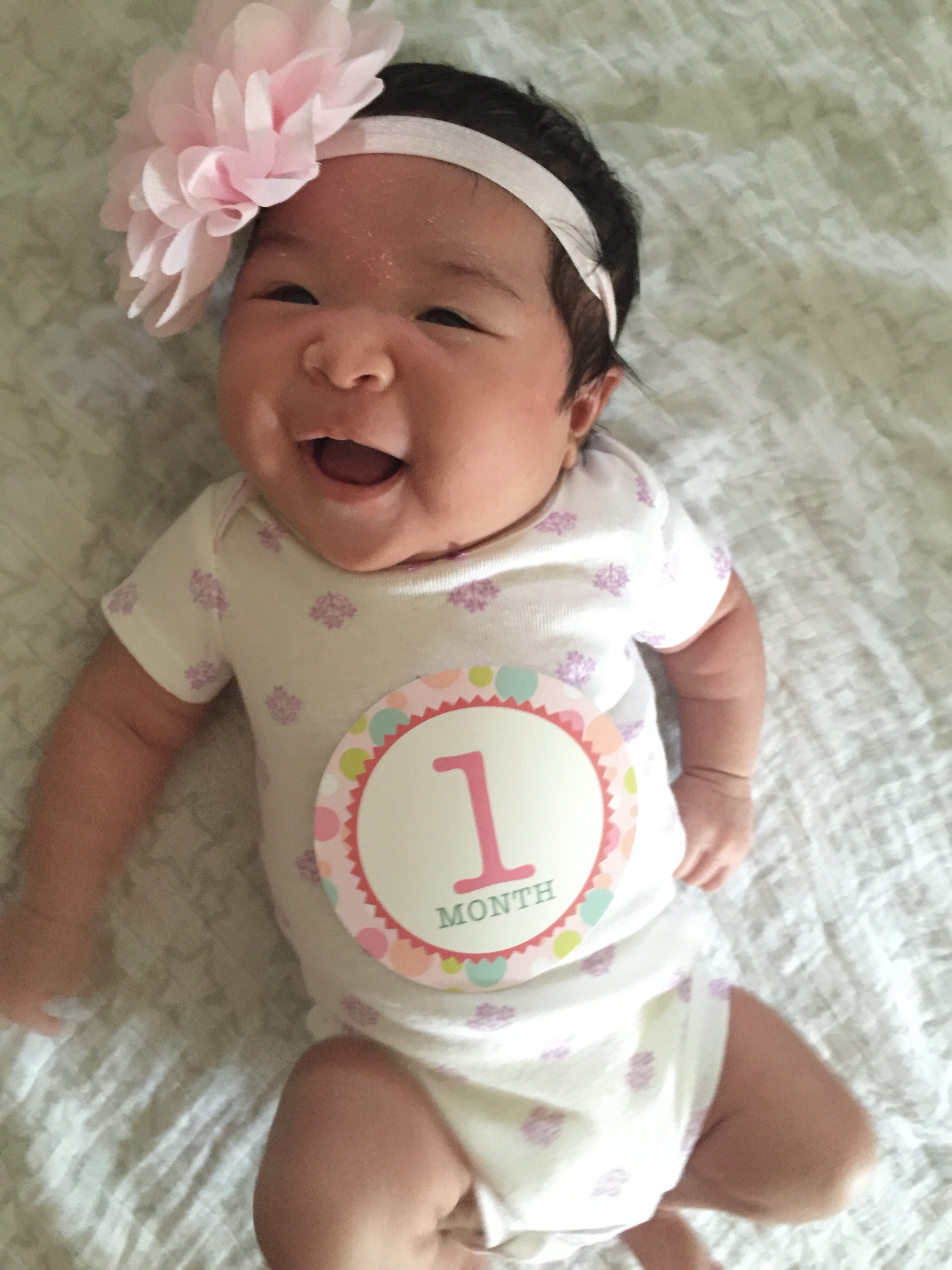 1 month today! Got pictures of her smiling. She loves the camera and is a natural. :x Waiting until now to take her out and about so I'm extra excited!