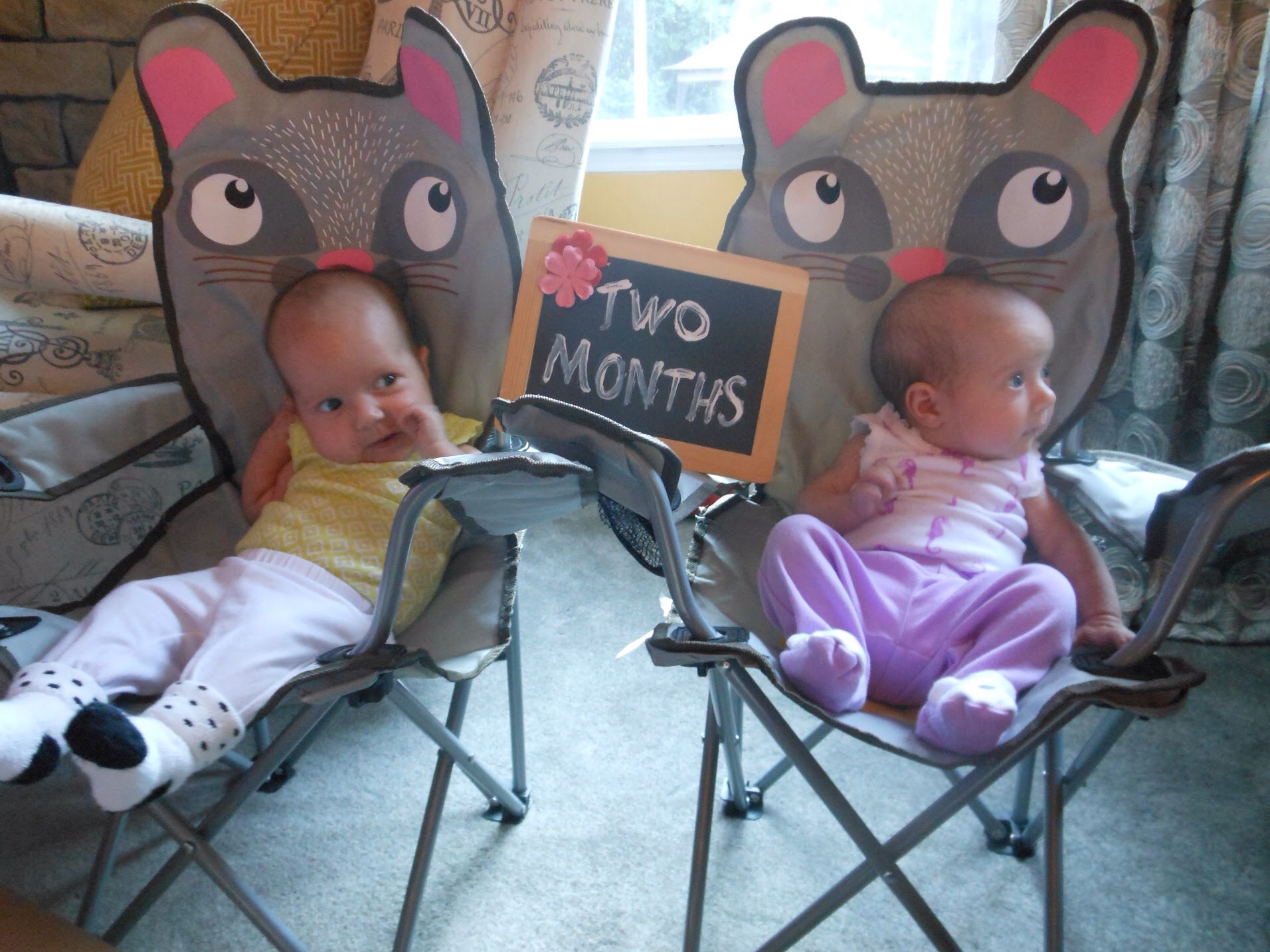 Got the girls camping chairs for next year! I think I'll use these in every monthly pic from now on to show how big they get. This pic was taken on the 16th, but still. Can't believe it's been 2 months already!!