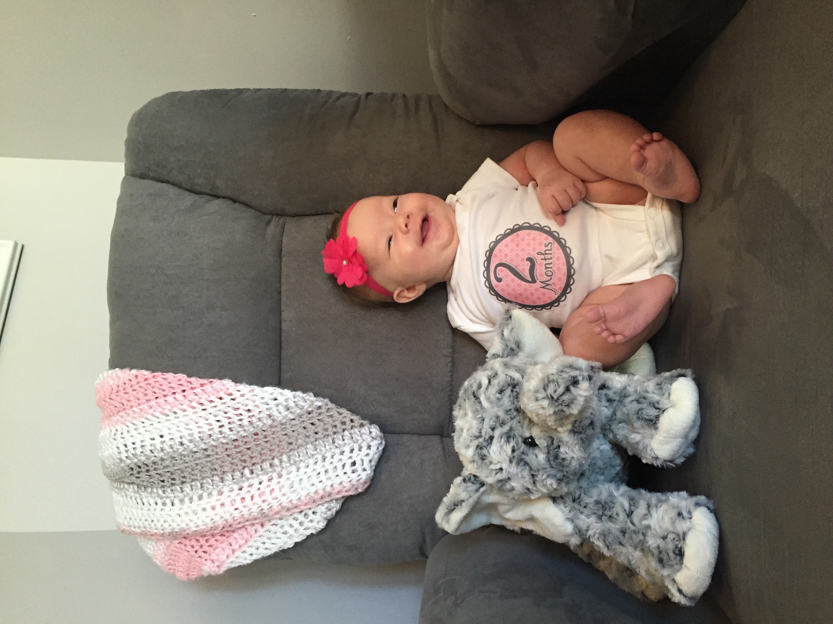 Leighton turned 2 months today. Her 2 month appt is next Monday. She weighed 6lb 10oz at birth and is now a little over 11lb! She is all smiles and is the happiest baby ever! I fall more and more in love with her every day!