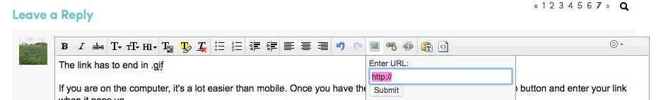 If you are on a computer you will see a pic icon to click at the top by font and such... Just delete what was here and paste the link. No need for the extra stuff we need for mobile. Hope that helps!