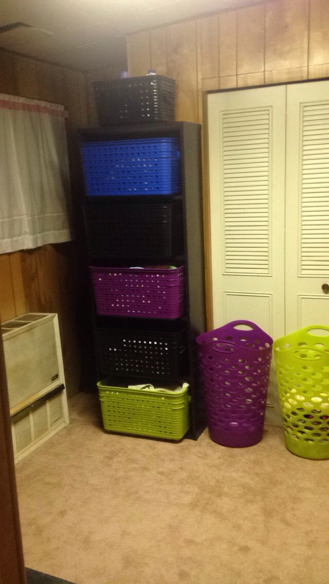 @ACleanLife24 I just finished a DIY laundry room organization system to hopefully help now and when baby comes. Bought a bookshelf and baskets to fit on shelves for sorting loads as clothes become dirty. Also got matching smaller baskets to put all cleaning solutions neatly away out of reach above washer and dryer.
