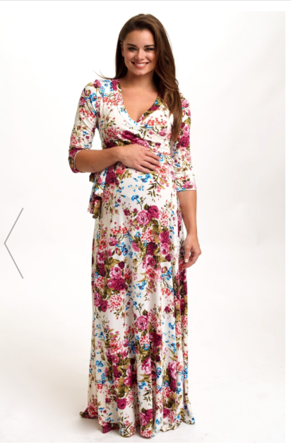 I have that dress in 2 different patterns. Super comfy and flattering. It's from www.pinkblushmaternity.com the clothes are super reasonable and they always have a discount code online.