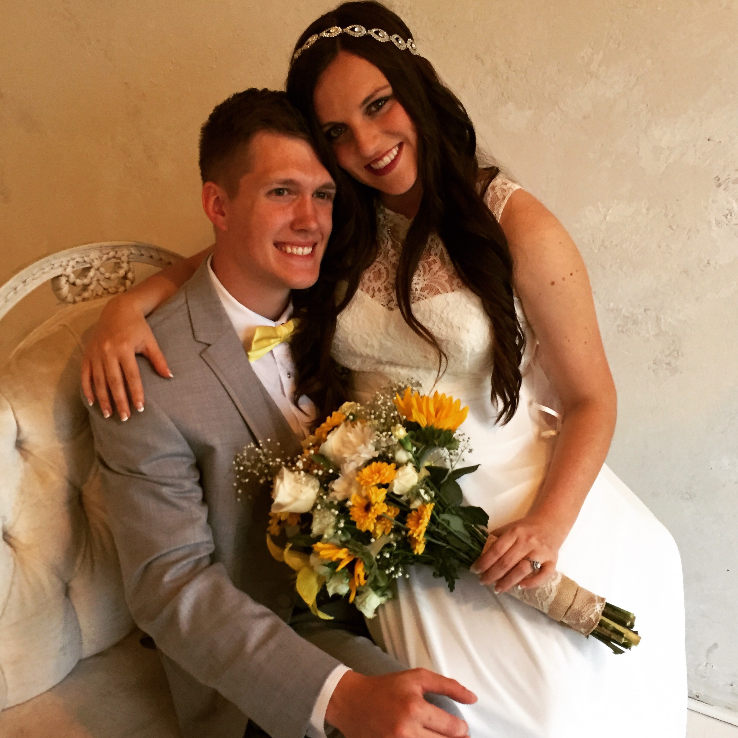 Just married my handsome husband this May, I was about 19 weeks pregnant! Unfortunately I don't have most of our wedding photos on my phone! This is our first!