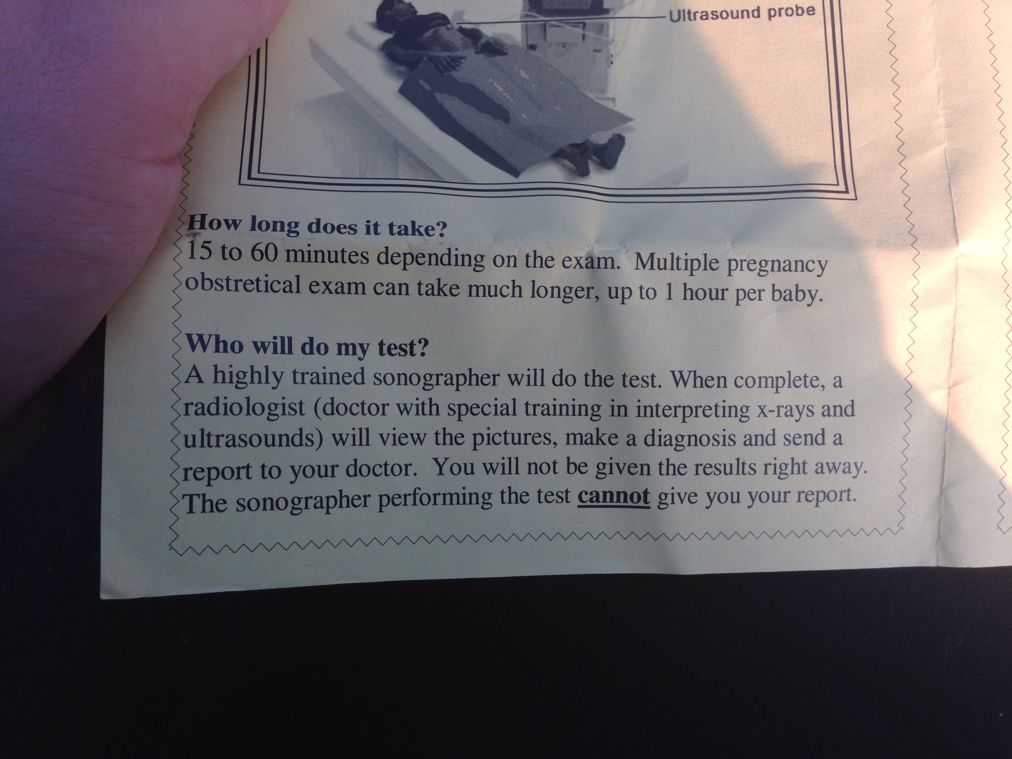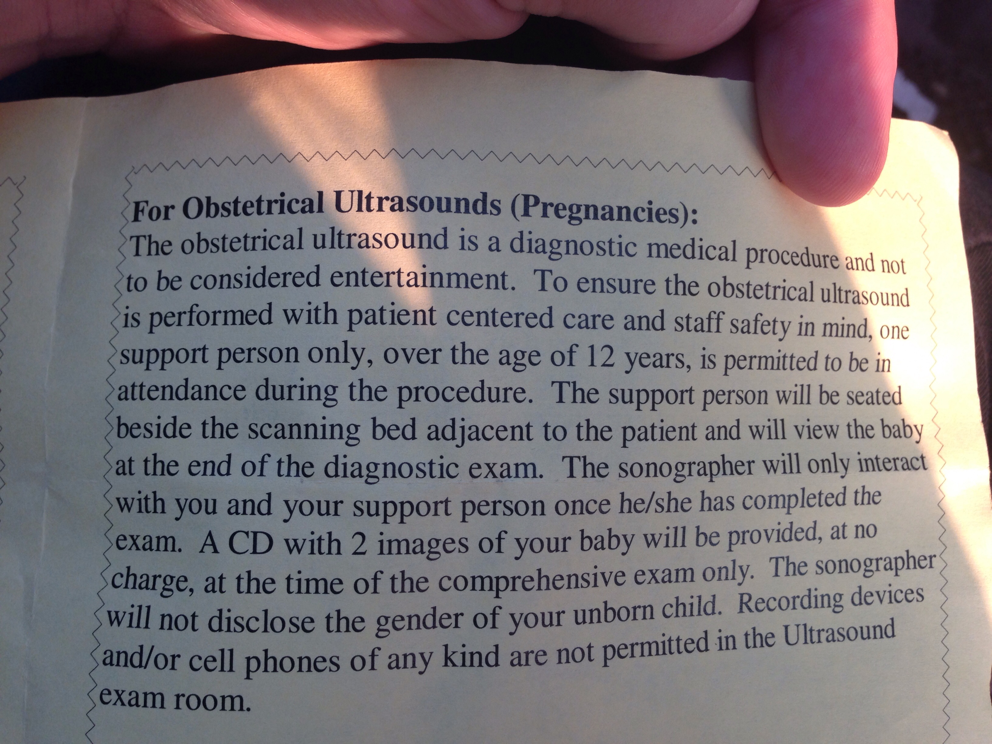 The techs won't Give us any information at all ! The tech won't tell us anything at all about the ultrasound, we're not aloud to have cellphones in the rooms anymore due to people taking pics of the ultrasound.
