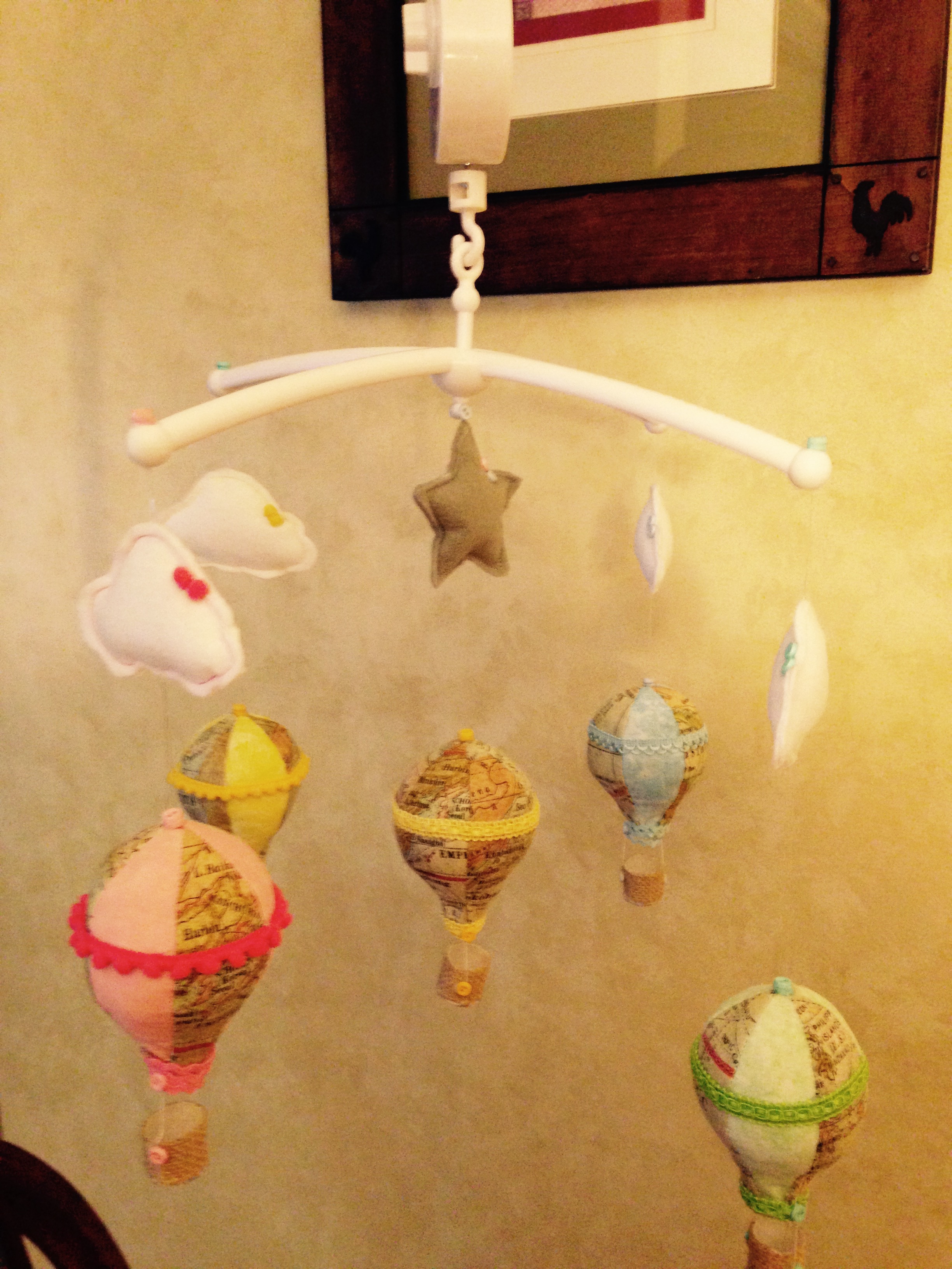 My struggle is this - to me, it's more of an art/decorative piece than a traditional mobile. I can't decide if I should hang it above the crib, changer/dresser, glider or somewhere else.