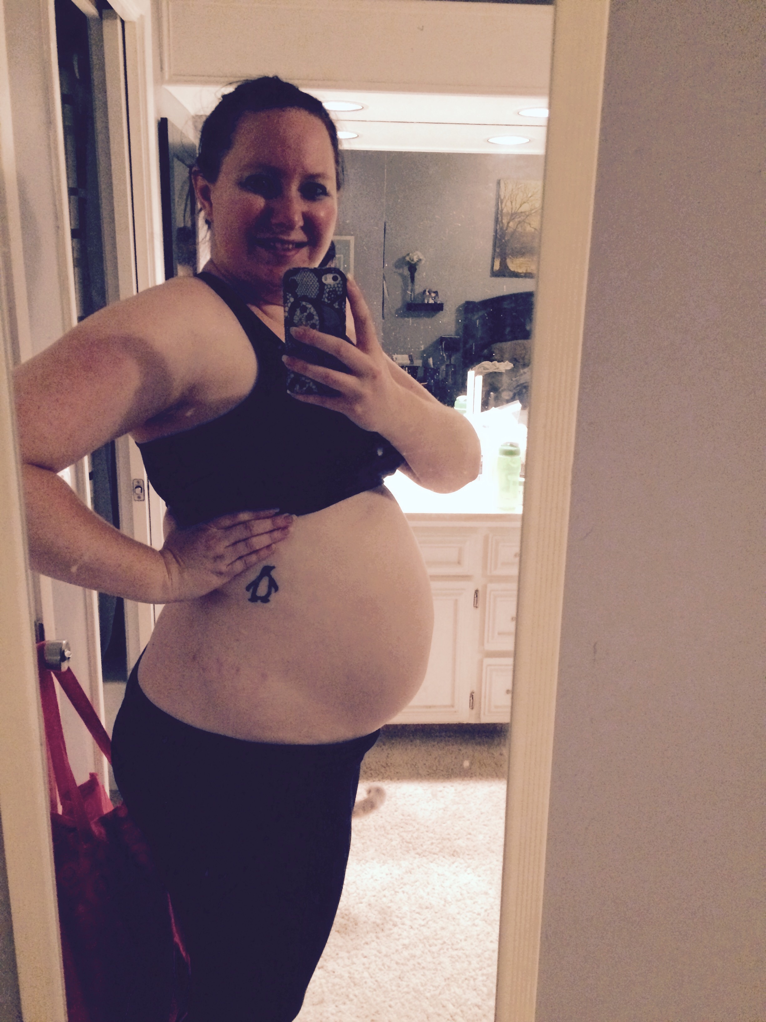 Loving all the bumps! I can't wait til I can join in on the fun, right now it just looks like I just ate a big lunch. Why do people insist on touching it? Stop it!