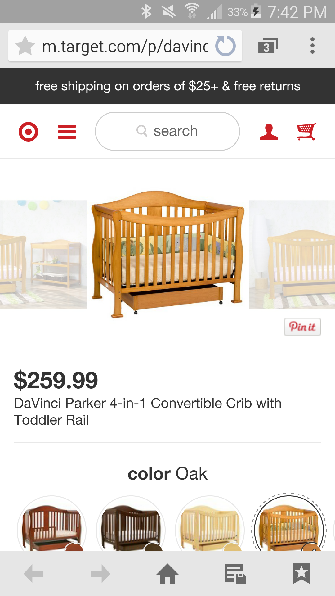 Thank you! We looked and saw Target had "free shipping" but a $60 oversize fee for each crib! Bleep that! We did find it on Wayfair too, as well as Amazon prime, so we will do it through one of them. Do you like the crib? Are you happy you got it?