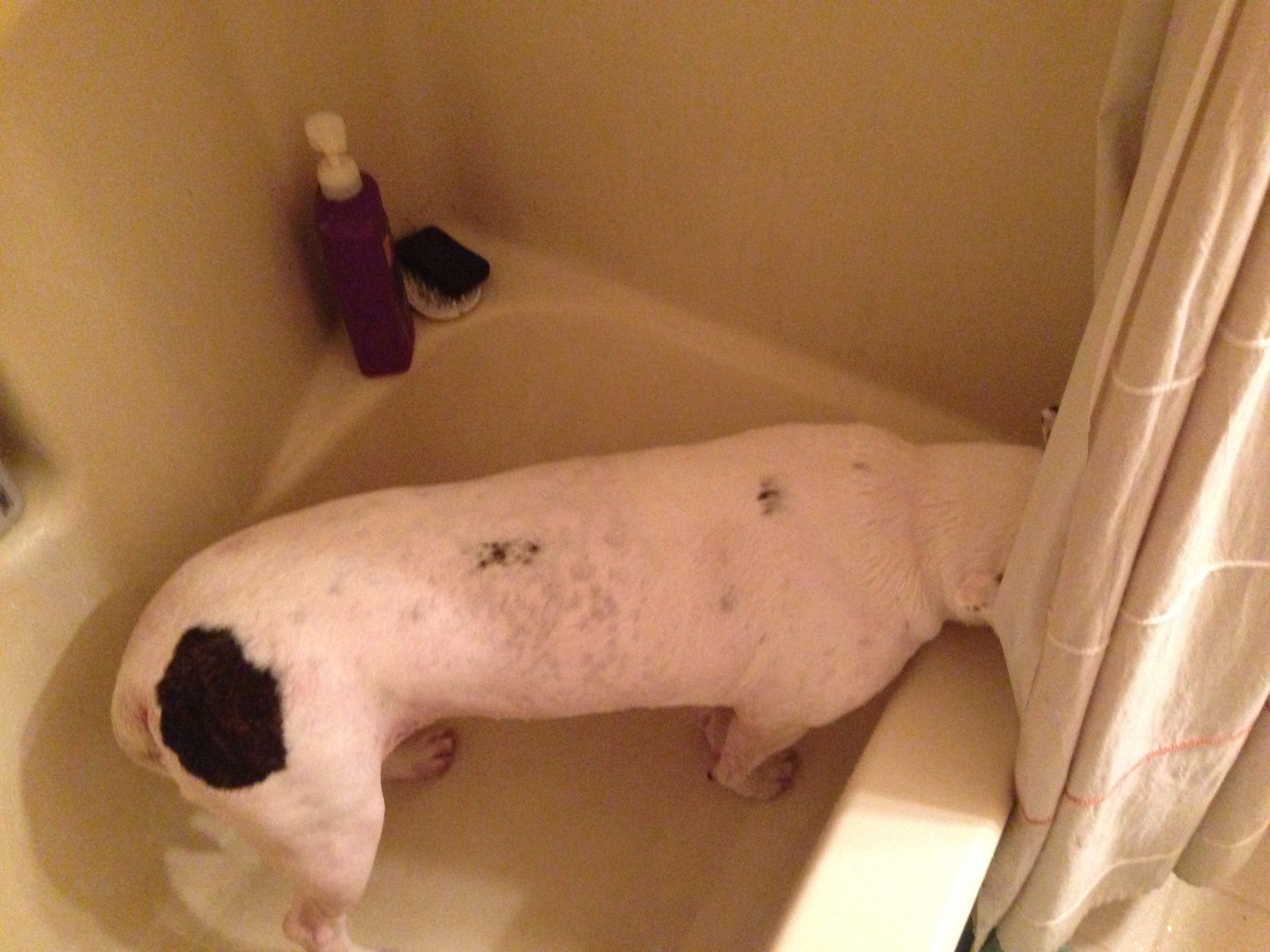 • My dog is aTwatwaffle! She decided to get muddy head to toe and require a bath. Add to that DH being out of town, which means that I got to wrestle the 80lb beast into the bathtub by myself! The worst part is that she is too darn cute to stay mad at. What a Twatwaffle!