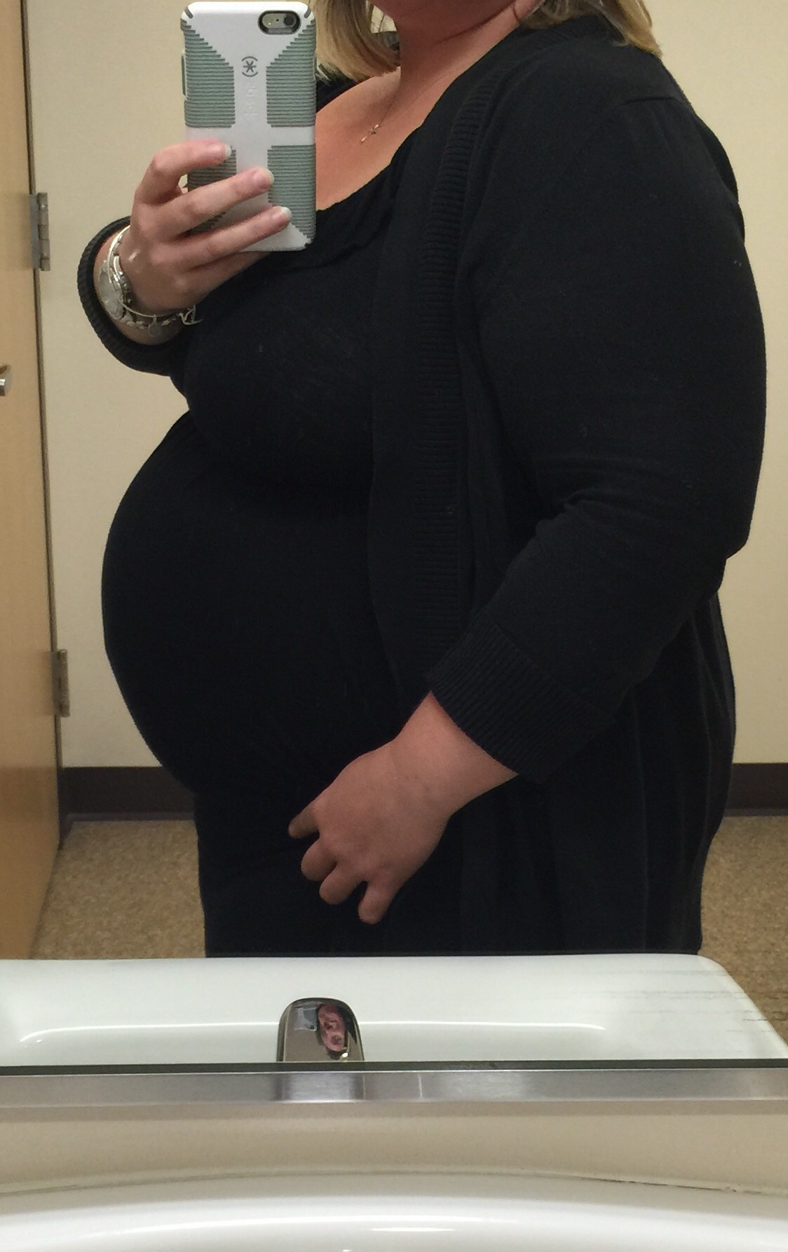 My face has broken out which sucks because I was so happy about how clear and glowy my skin was for such a long time. Hopefully it passes. I've been using a pregnancy pillow which is amazing! it helps to have something to snuggle with since hubby isn't home :-(
