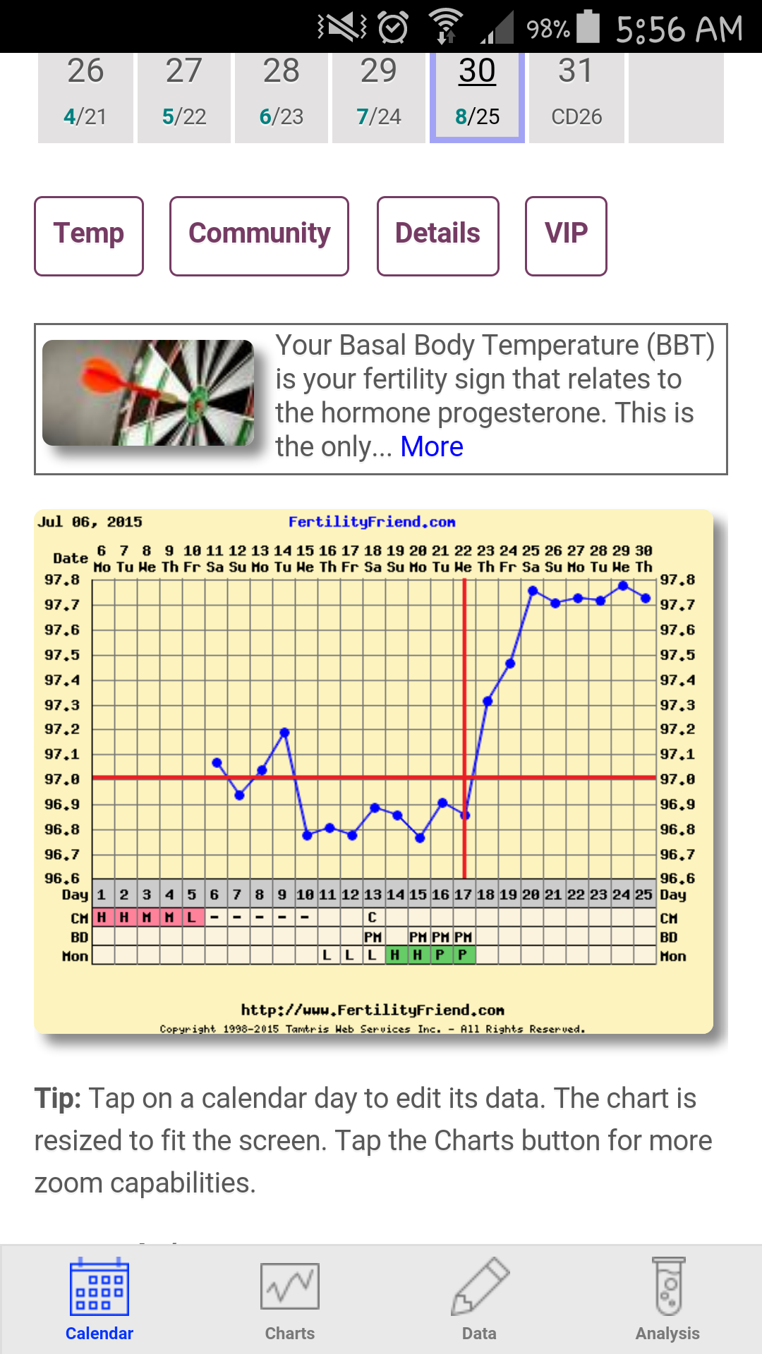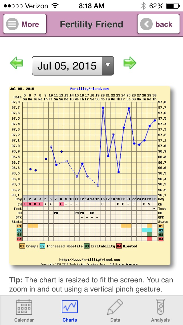 Symptoms/Rants/Raves/Chart Stalk: It's getting really hard to keep myself from getting excited. Things can change on a dime, so I'm just holding my breath at this point and trying to mentally minimize any potential signs or symptoms.