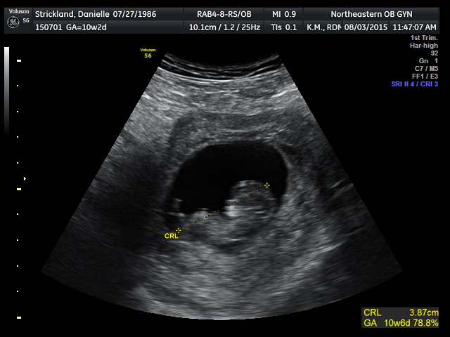 10w2d today! Baby measuring a few days ahead, I blame that on his/her dad's giant self. FHR was 184, crazy to see how fast it was, but after my h/o MC, I'll definitely take a fast HR!