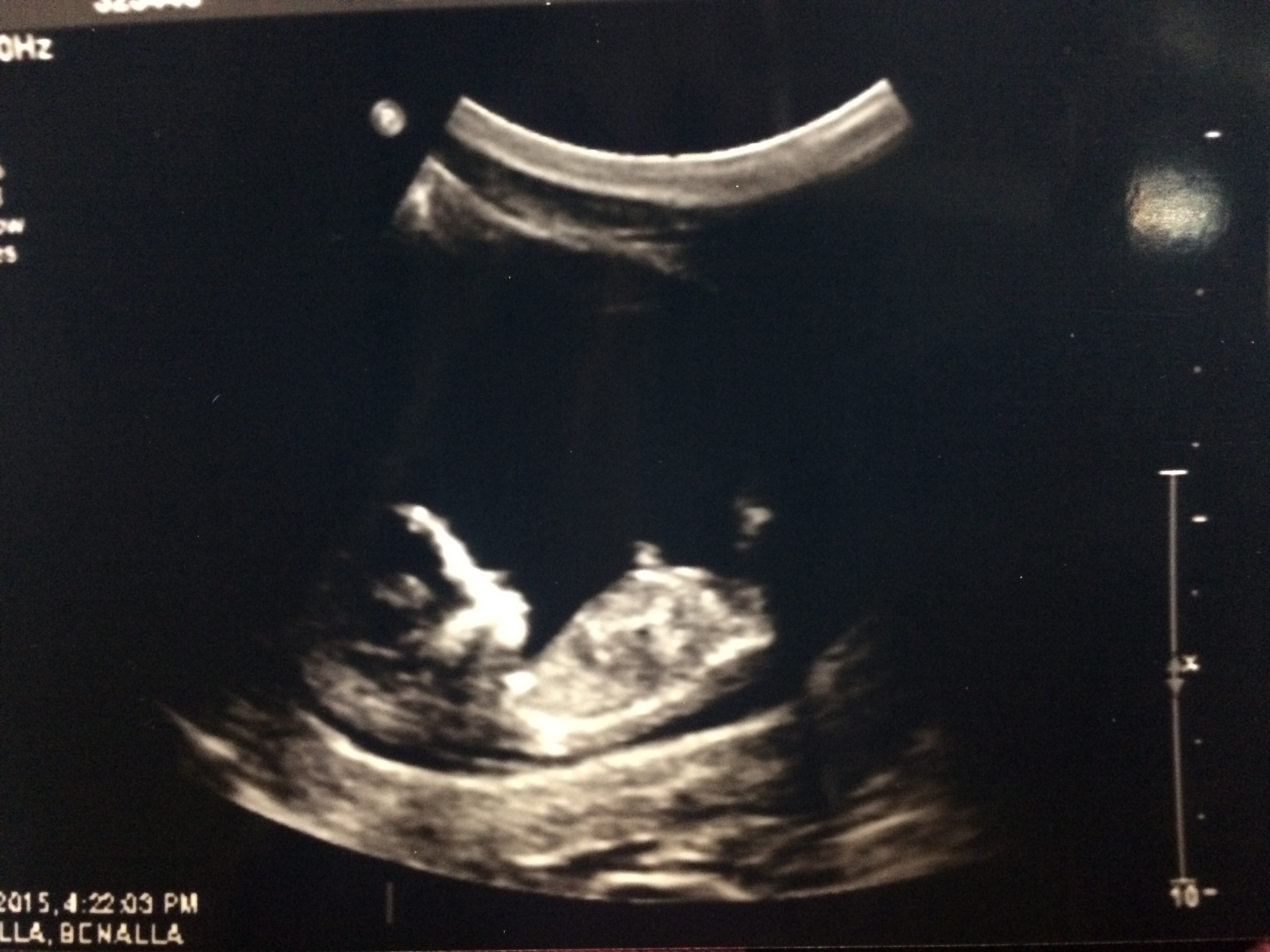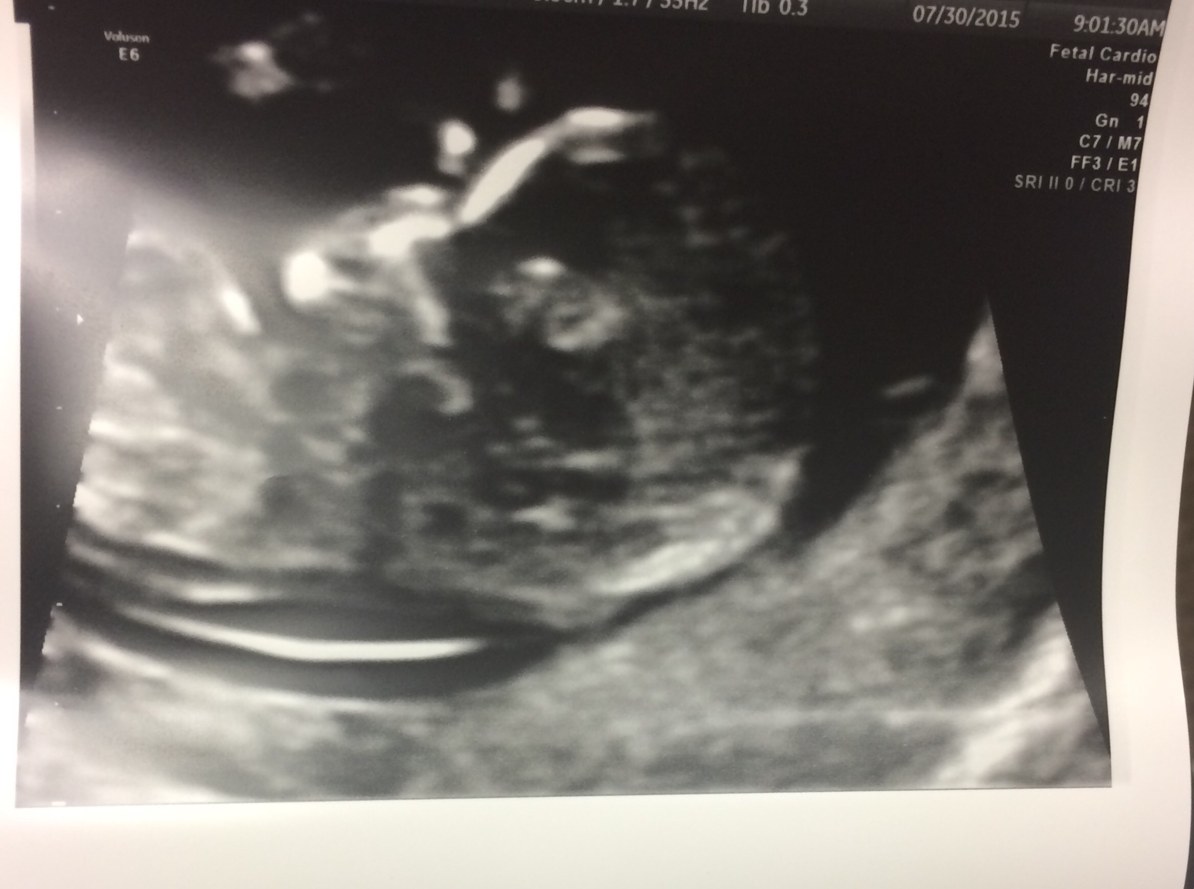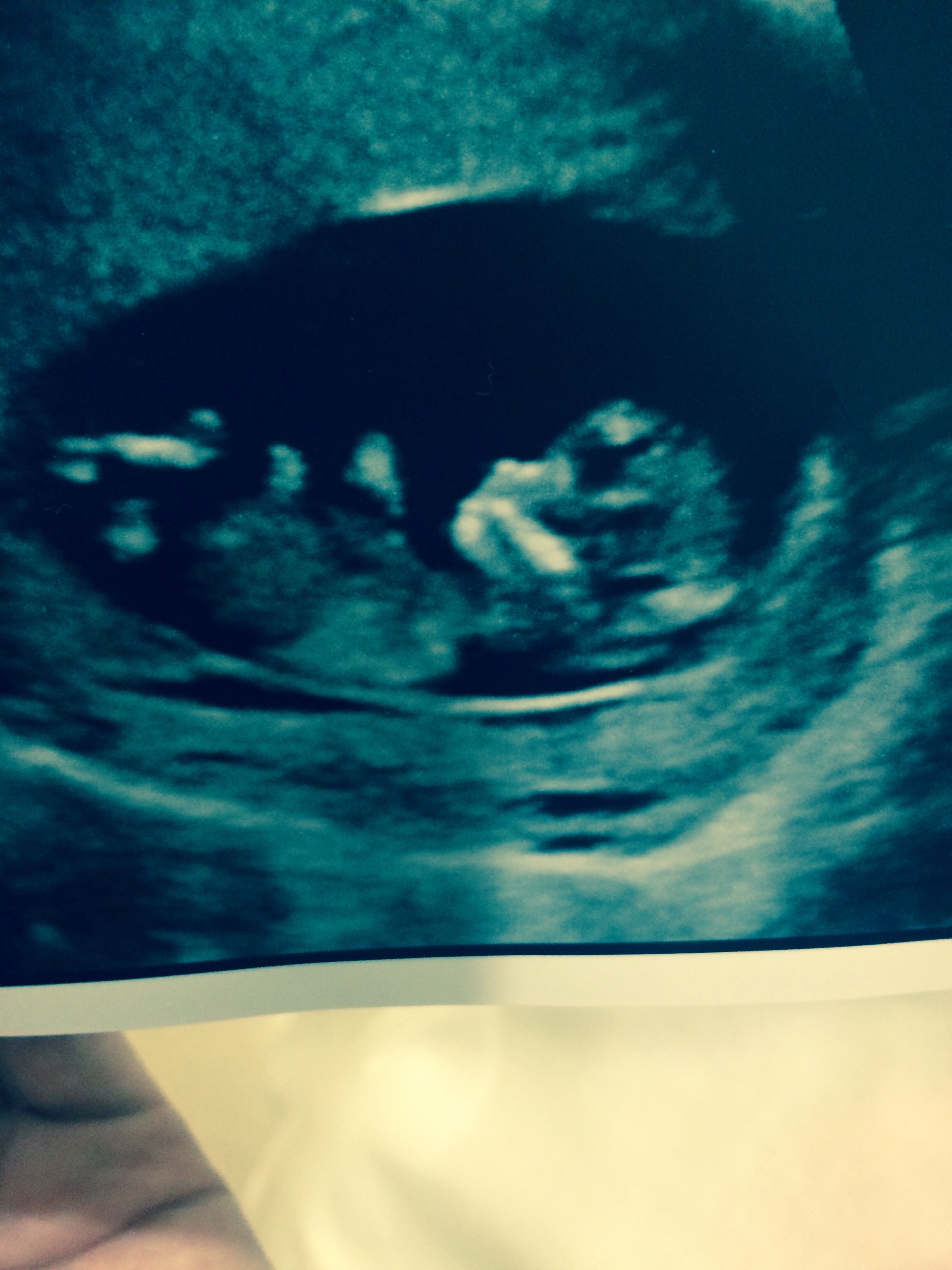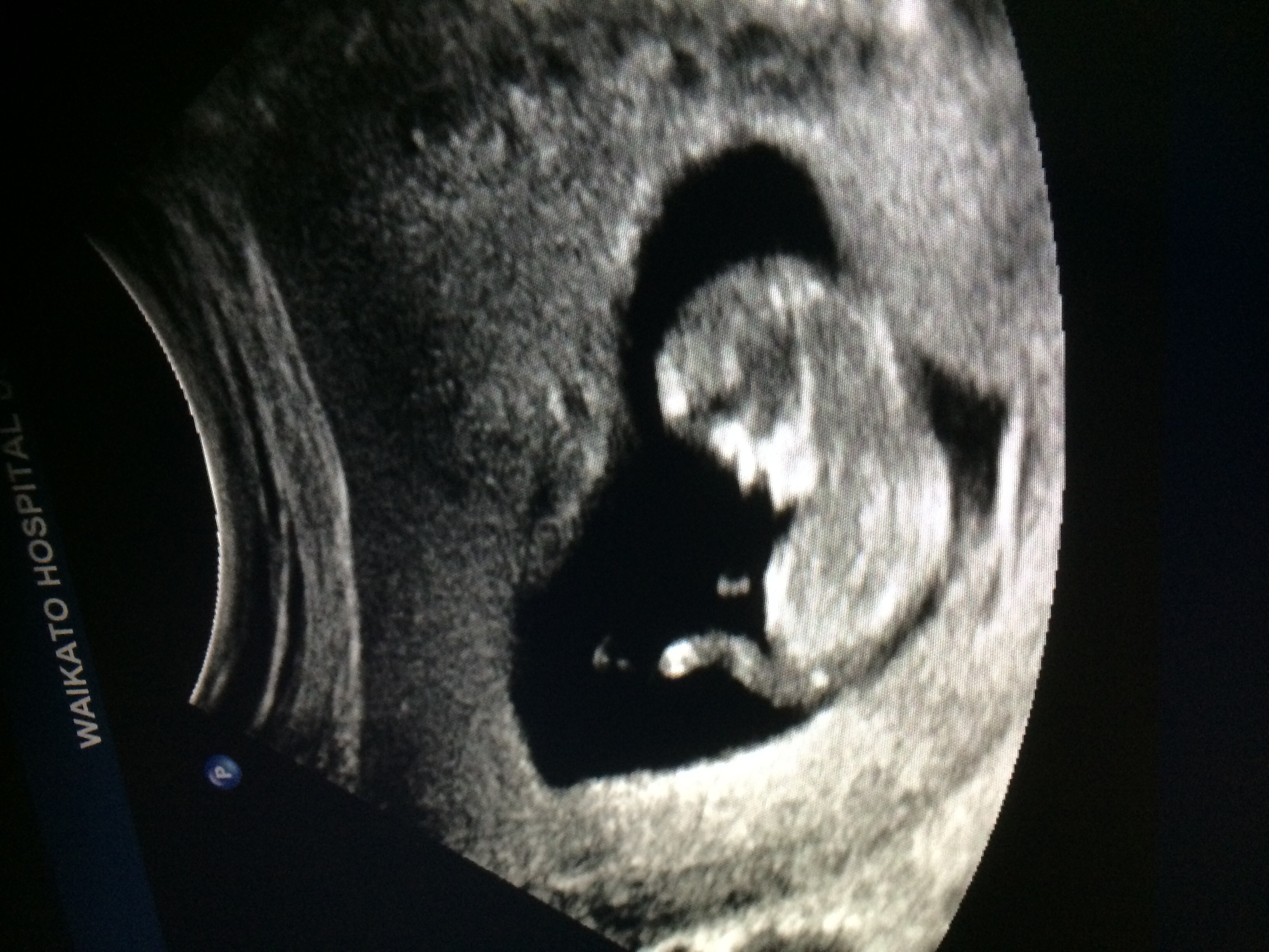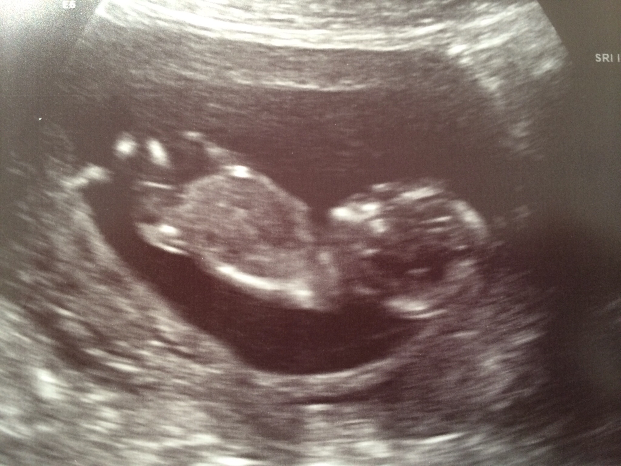 Our little one at 13 weeks 1 day! I didn't know you could have Braxton Hicks contractions this early - but apparently I was having one and it left baby a little squished and made it hard to get a good pic. Tech tried her best though! Loved seeing baby actually looking like a baby (instead of just a peanut) these days