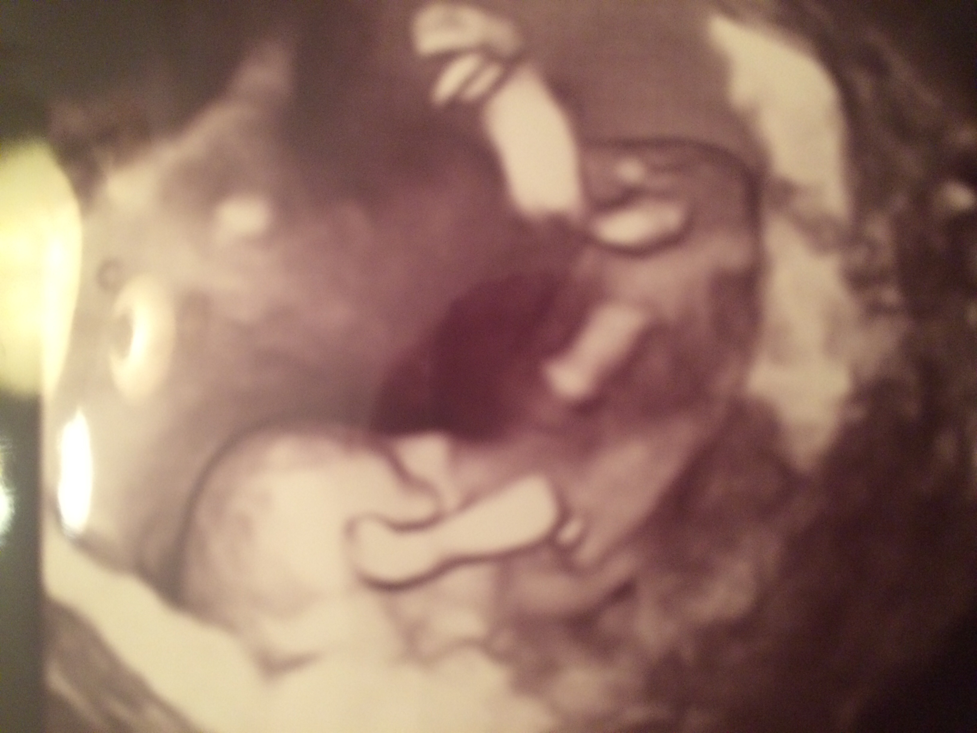 But I'll play along. Did the tech give you a guess? Just for fun, I'll say boy! Either way, looks like a sweet baby! And so sorry for your losses, I can't imagine the pain of losing a child like that.