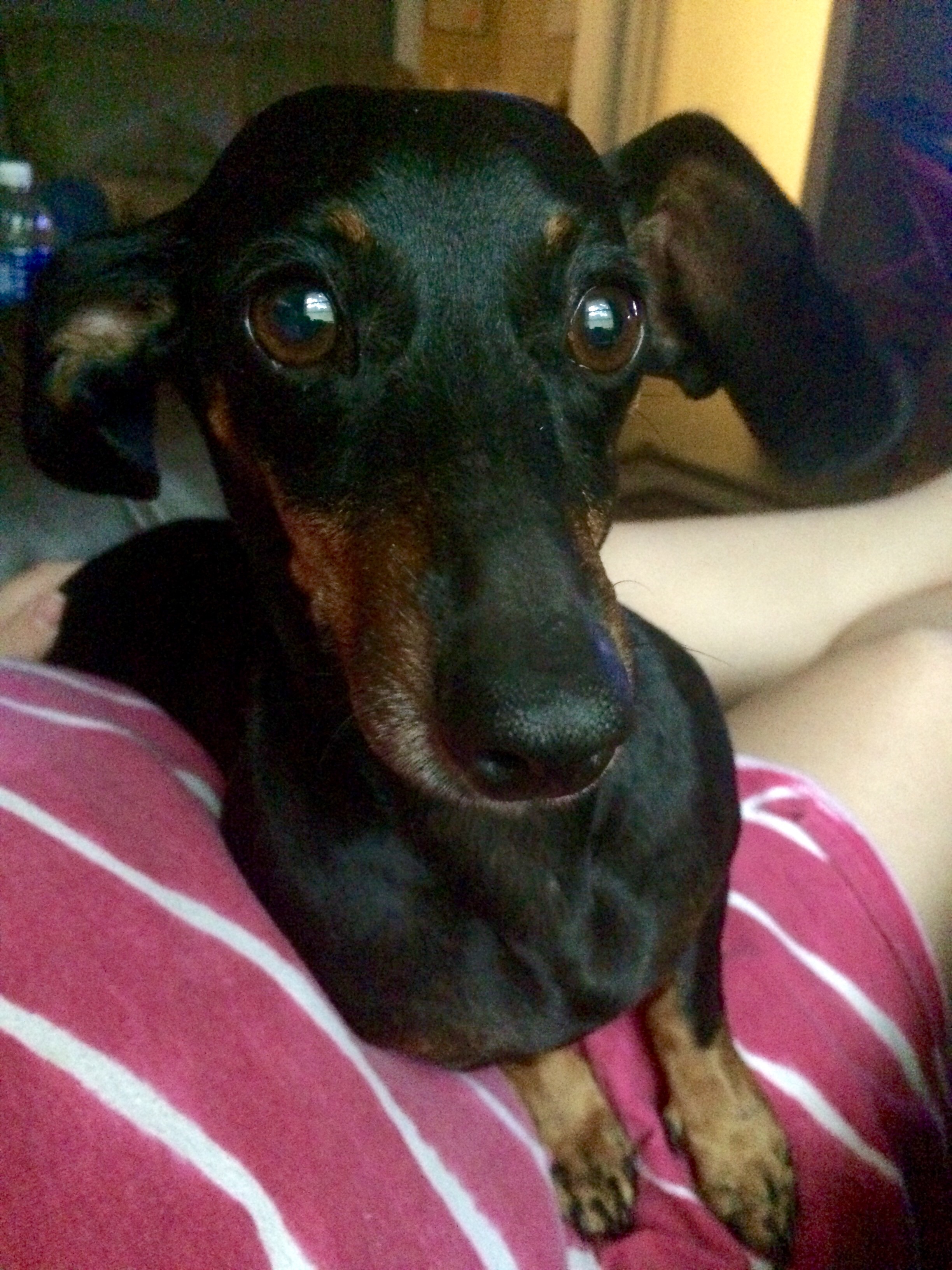 • My dog stopped eating for a few days now and just stares at me all the time. Finally got him to eat last night by putting peanut butter in his bowl and sitting next to him. He never leaves my side.