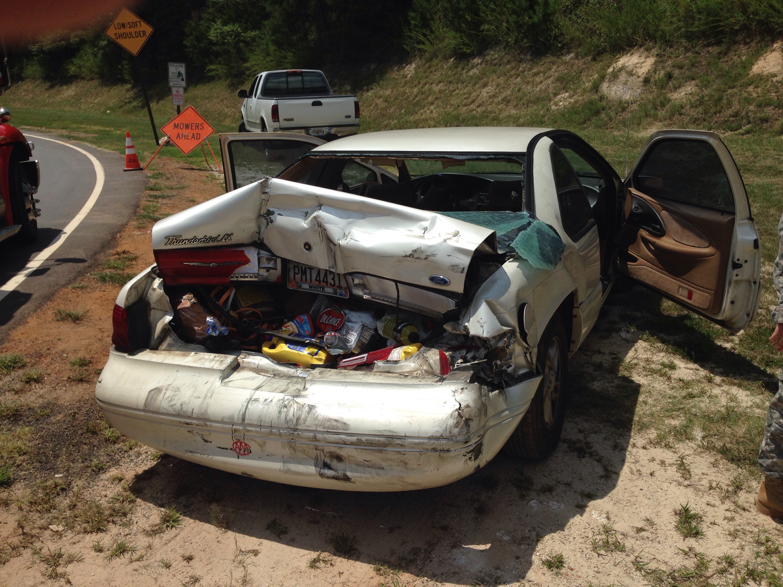 They were Tboned at 45mph. Totaled her car. Super scary stuff. Baby was just fine, as was her other son and step daughter in the back seat thanks to extended rear facing and good car seats! It made a believer out of me. Her husband was driving and hurt his hand, they all had scratches and bruises, but they walked away and baby was just fine.