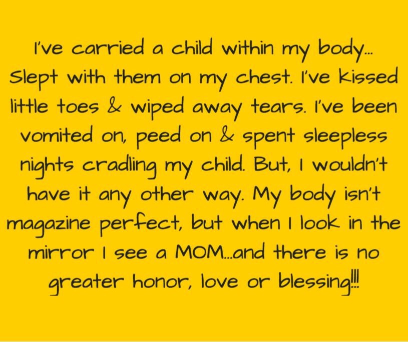 i know I can't be the only one that doesn't feel so sexy!!! Mind you it's been 3 months after birth so it take time, but still sometimes I don't feel I'm at my best. (Looks wise) But I got a child that I never knew I could love so much. This quote it so true