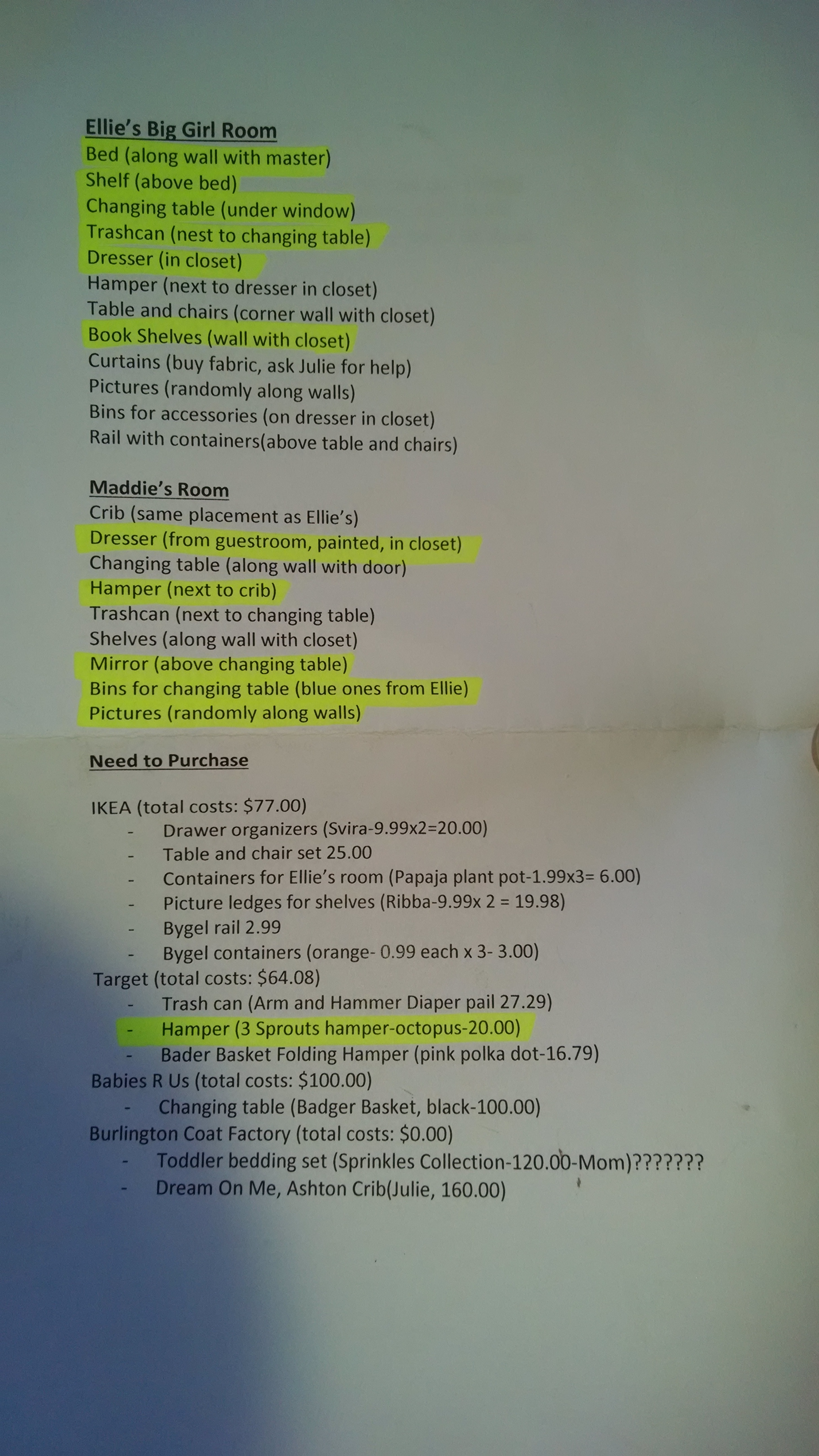 ETA: this is just nursery stuff. We are also getting a double stroller. We still have the pumpkin seat and 2 bases. I might get a RnP since we use the pack in play for time outs(she does not sit still in her chair)