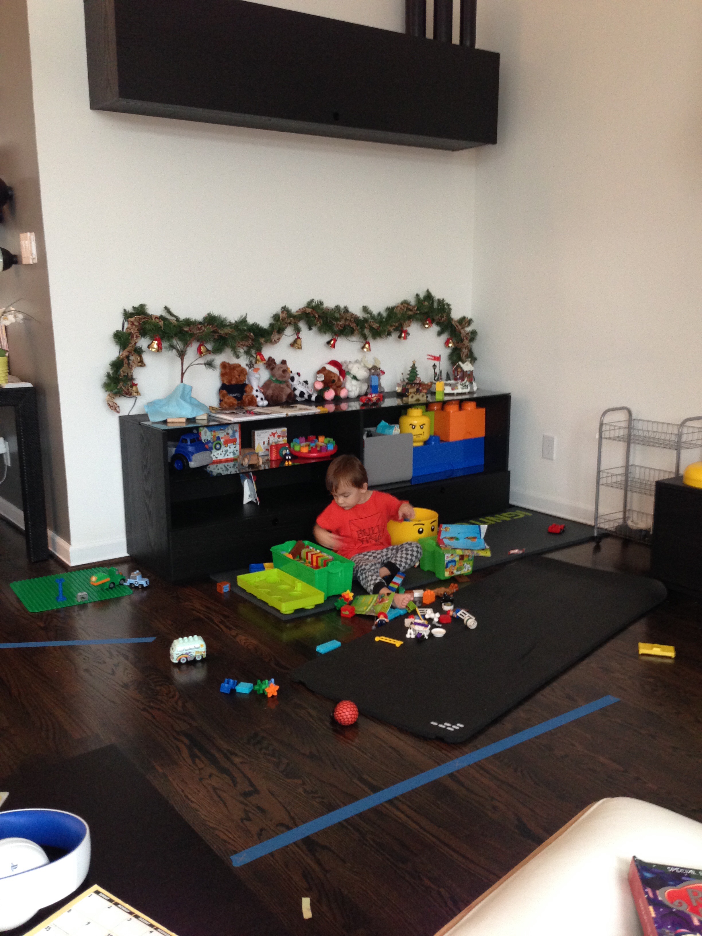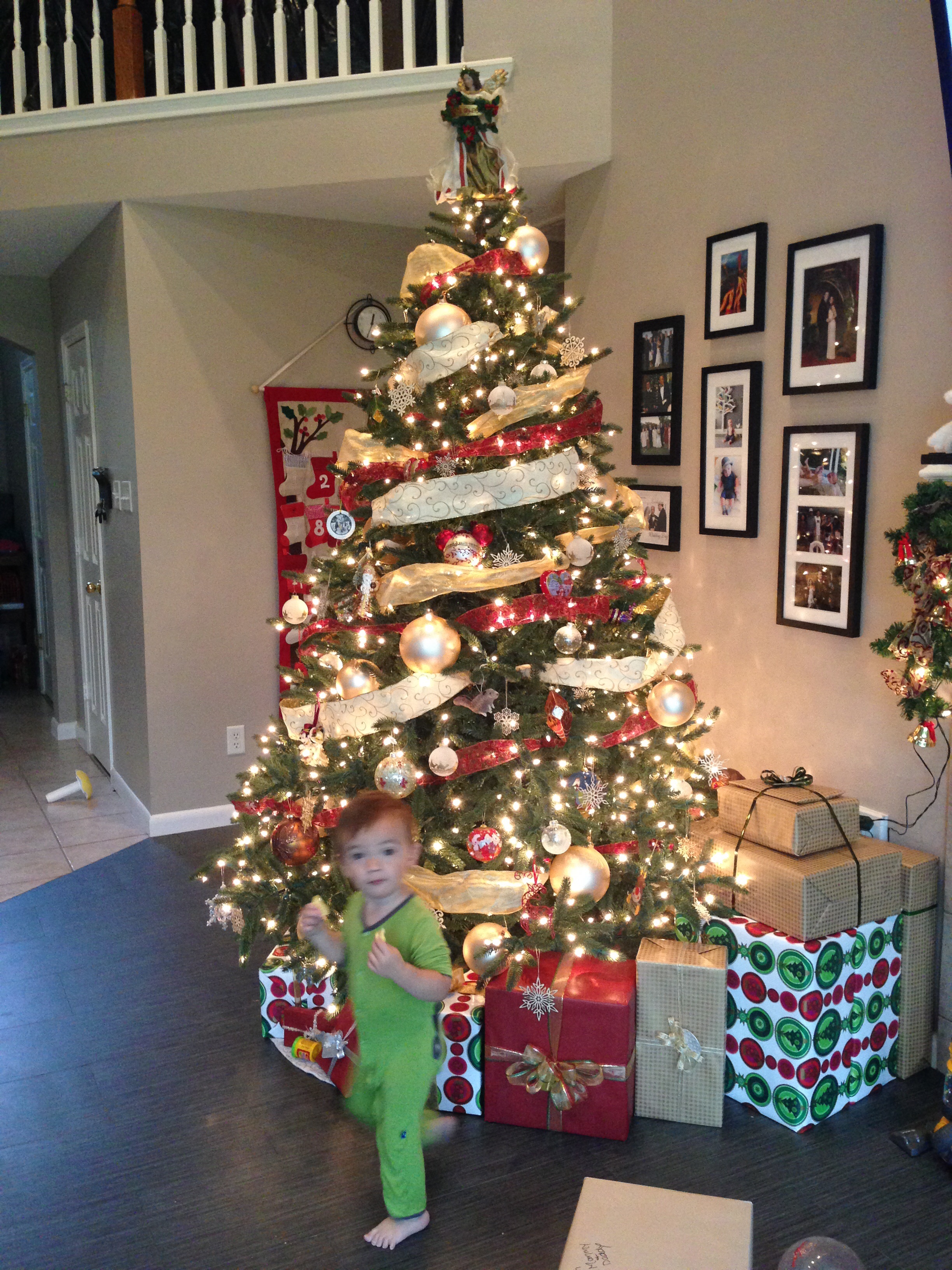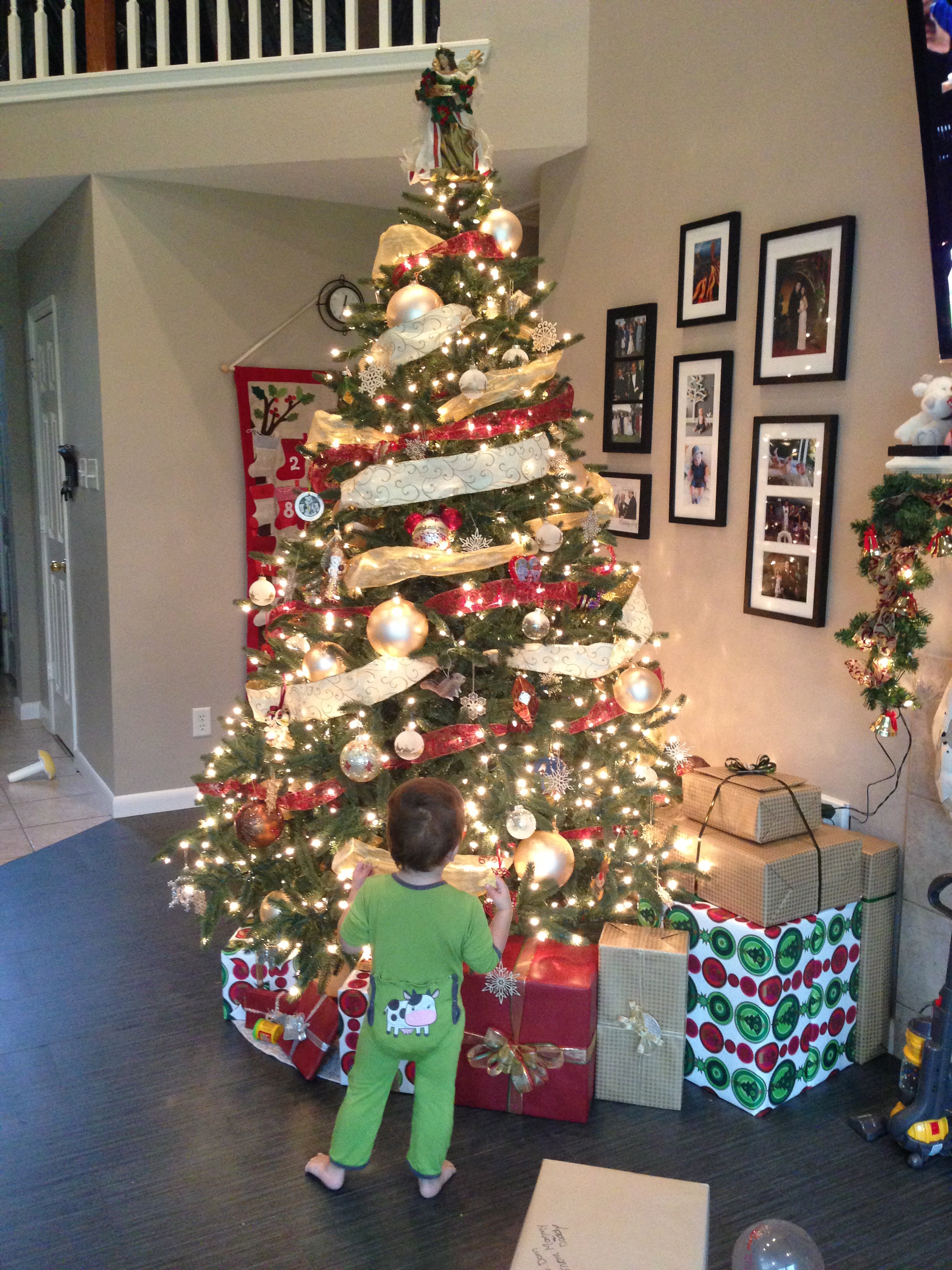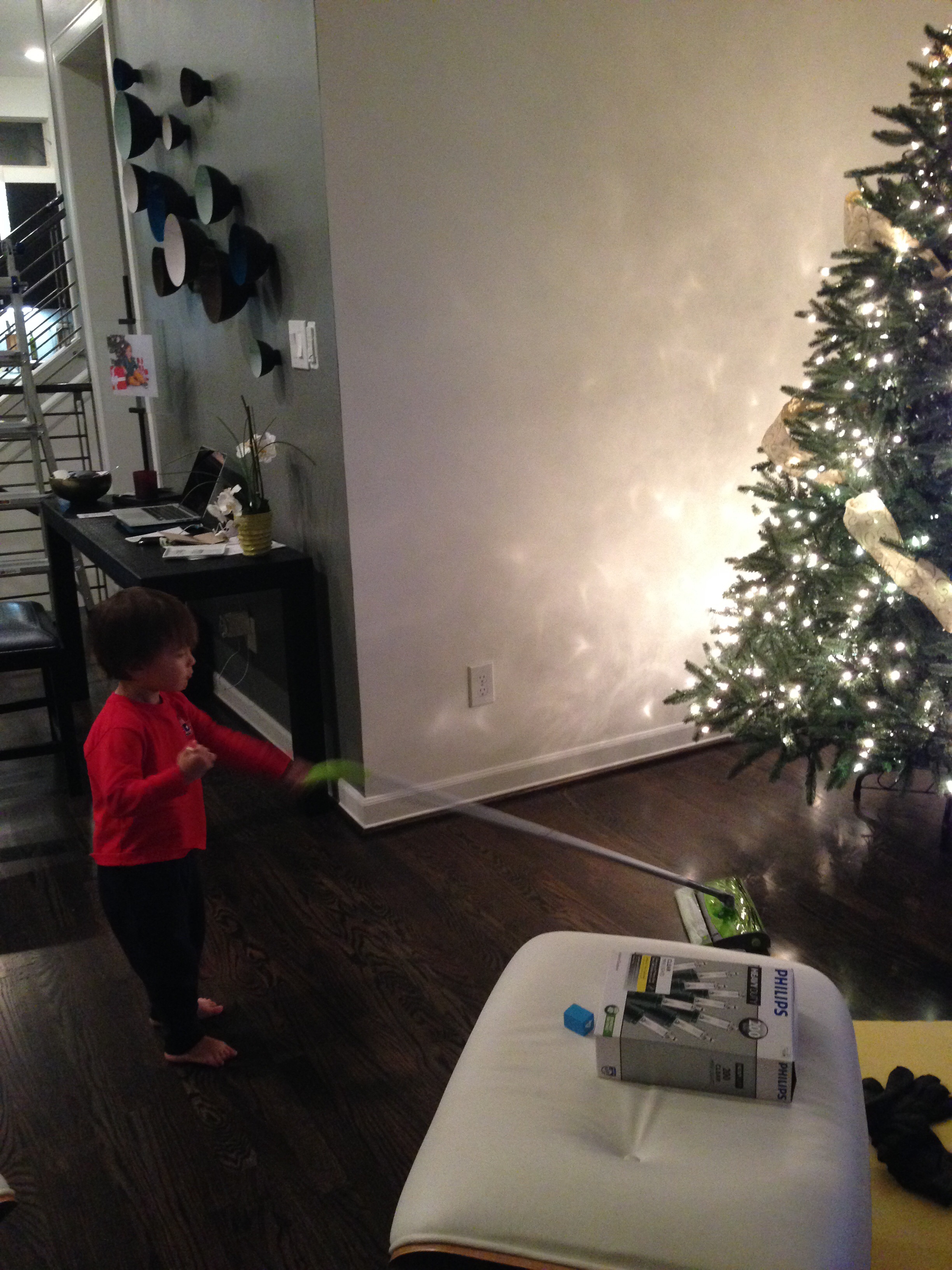 DS found the control switch for the Christmas Tree and keeps begging to put the tree up everyday. He starts to head downstairs, and when we ask him where he is going, he tells us he is getting the Christmas Tree.