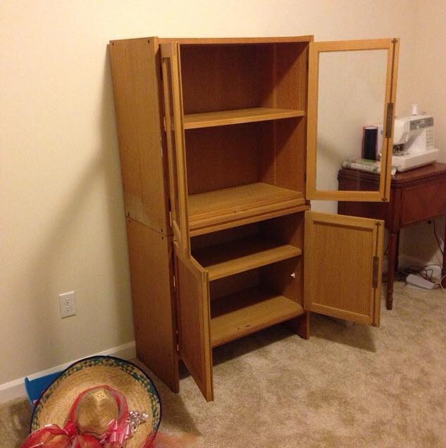 oh, I also have this cabinet in my sewing room that I repainted and plan on incorporating into the nursery somehow. Here are the before and afters.