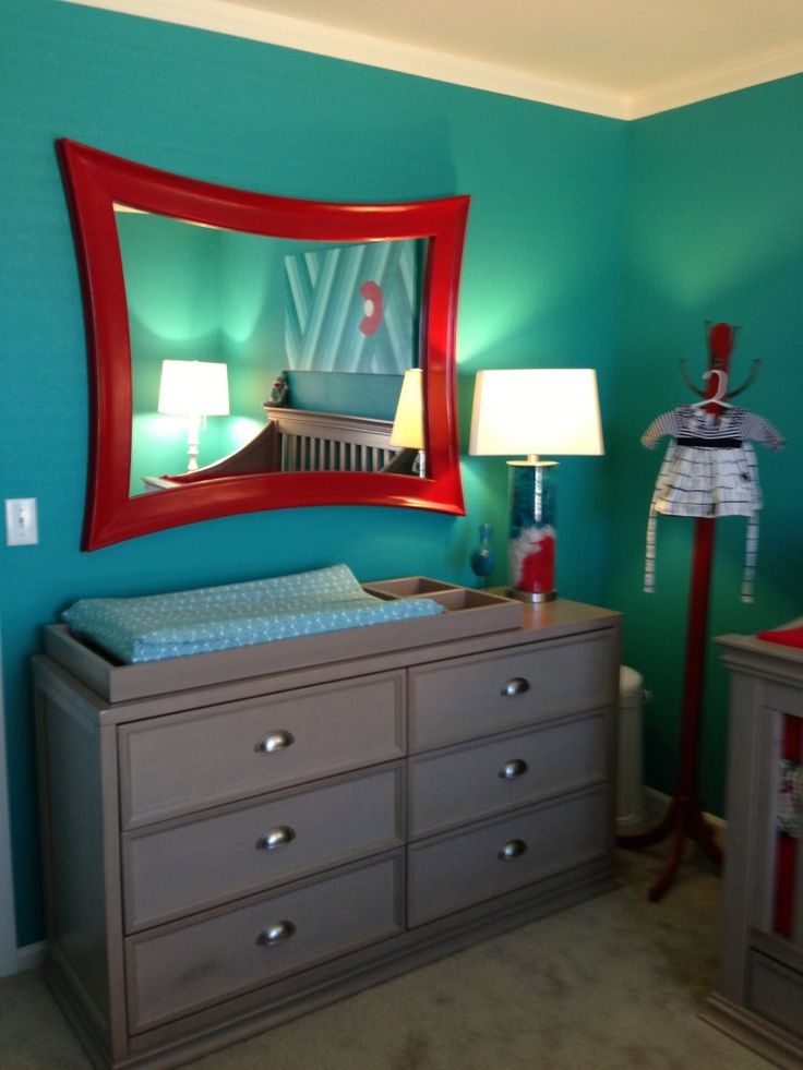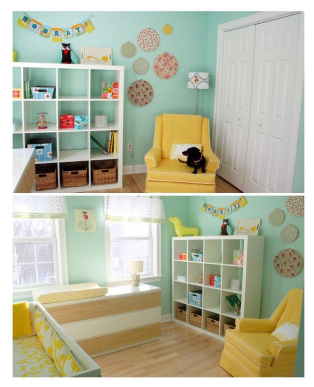 • Love all these nurseries!!! Not sure what I want yet.. The room we are going to redo has green carpet and my dad is building my crib/changing table which will be white.. I'm thinking paint the walls tan and incorporate green/navy decor for a boy and green/coral decor for a girl? I'm sure I'll change my mind 20 times before we actually paint and decorate!