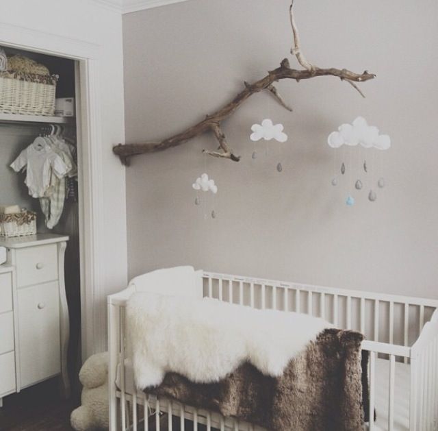 Love the branch over the crib in the 2nd but I'd be a little worried it would fall lol... also  I love clouds but they seem a little sad, right? Not sure... I love the look but worry it's not good for a baby