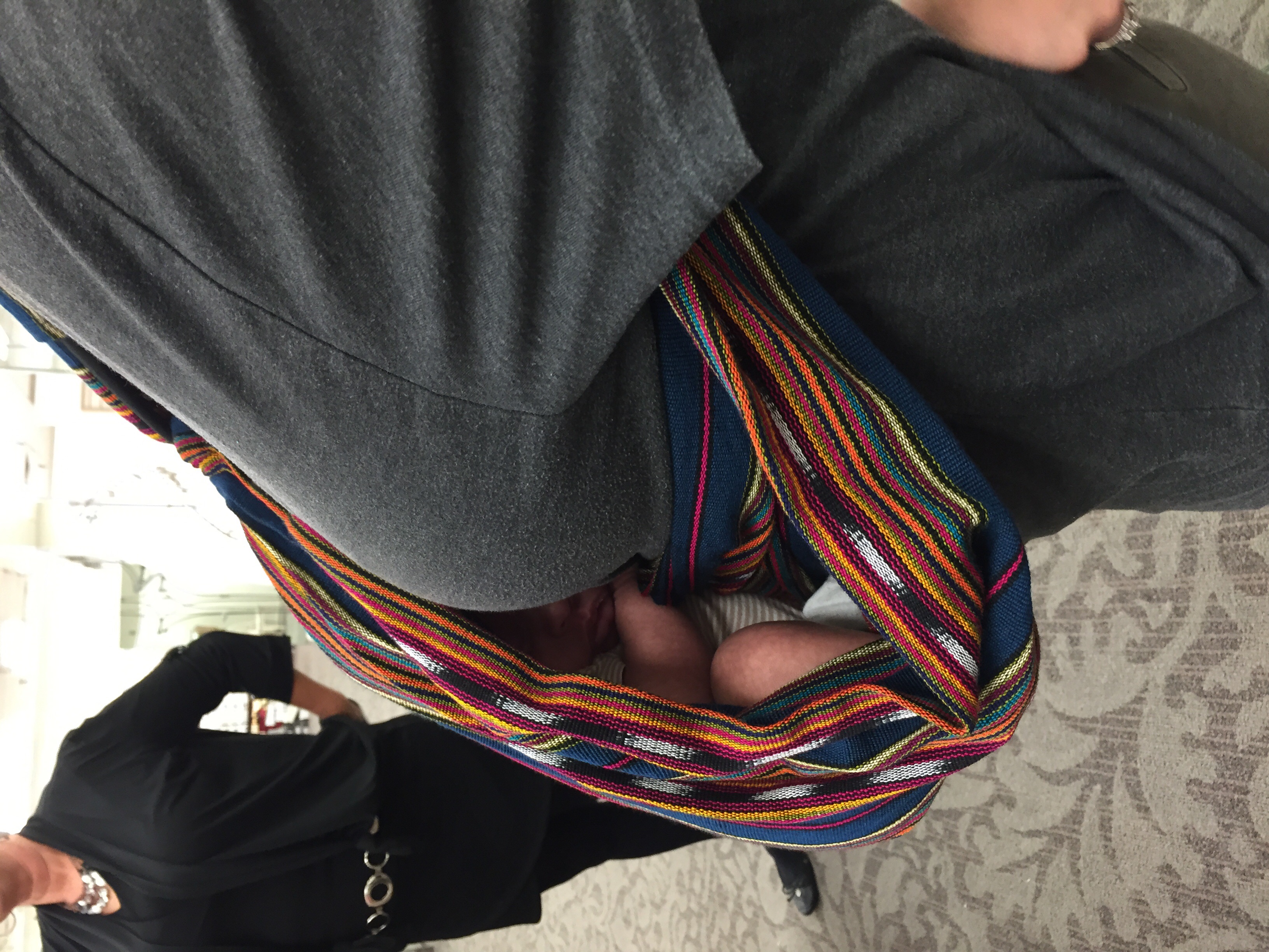 • We have a moby wrap, which is awesome for soothing baby, but to me, it's a pain in the butt to tie when I have a screaming baby and am in a hurry.